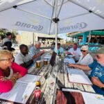 Bevor wir das Seebad Swakopmund am Atlantischen Ozean erreichen, stellen uns und unsere Fahrzeuge die namibischen Schotterstraßen auf eine harte Probe. Aber die Fahrzeuge halten mit leichten Schäden durch – keine platten Reifen, dafür nur ein Sprung in der Windschutzscheibe. Allerdings haben wir von der Schotterpiste auch kiloweise Staub geladen und im Fahrzeug verteilt. Nach ca. der Hälfte unserer über 400 km langen Tagestour erscheint plötzlich in Uis wie ein Wunder eine nagelneue Straße mit asphaltähnlicher Oberfläche in der Wüste. Hier erlebt man, wie China den afrikanischen Staaten unter die Arme greift. Für uns ist die Straße sehr willkommen. Die letzten ca. 200 km zum Cape Cross und nach Swakopmund werden jetzt zur angenehmen Fahrt. Das Cape Cross beherbergt nicht nur mit ca. 250 000 Robben (neue Zahlen sprechen von über 1 Million) die weltweit größte Robbenkolonie, sondern ist auch der Punkt, an dem ein portugiesischer Seefahrer als erster 1486 den Fuß auf namibisches Land setzte. In Swakopmund fühlt man sich sofort wohl. Ein angenehmes Klima mit 22 °C, ein wunderbarer Campingplatz und ausreichende Restaurants mit namibischen und deutschen Speisen. Da bietet es sich natürlich an, diese schon am Anreisetag ausgiebig zu testen und dabei den Sonnenuntergang auf dem Atlantik zu genießen.