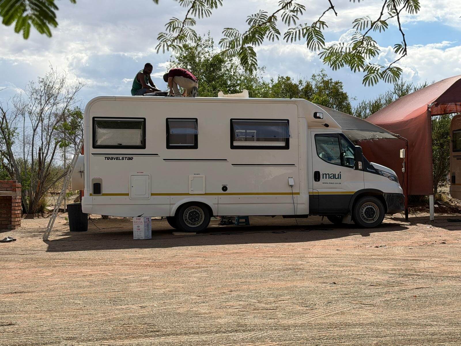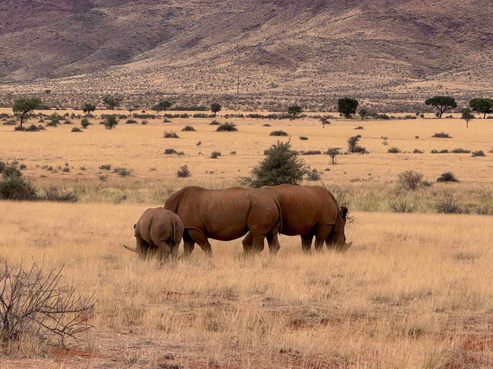 Nach dem Erlebnis der Dünenlandschaft Soussusvlei geht unsere Reise weiter ostwärts. Da wir wieder eine lange Strecke über Schotterstraßen zurücklegen müssen, machen wir einen Zwischenstopp in Maltahöhe. Bei Fahrten im Staub und bei nahe 40 °C freut man sich auf das Camp. Wir werden von den Gastgebern sehr herzlich empfangen und genießen trotz der Hitze die Ruhe nach der Schotterpiste. Am Abend bereiteten die Gastgeber ein leckeres Essen, das die Hausfrau mit riesigen Portionen verteilt. Wem das nicht reicht, der bekommt einen gleich großen Nachschlag. Die Stimmung steigt und dann bringt etwas Regen auch noch eine Abkühlung. Wir erwarten eine ruhige und angenehm kühle Nacht.