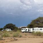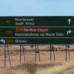Wir fahren zum nächsten und letzten Highlight unserer Reise in Namibia, dem Fish River Canyon. Nachdem wir Grünau passiert und eventuell den Dieseltank nochmals gefüllt haben, geht es zum vorletzten Mal über Schotterpisten zur Canyon Road Campsite. Der Besitzer hat ein Faible für alte amerikanische Autos, die malerisch drapiert langsam vor sich hinrosten. Abends wird das Restaurant ausprobiert oder selbst gekocht. Morgen geht es zeitig mit einem Jeep zum zweitgrößten Canyon der Welt. Auch in diesem Camp kam mit uns der Regen am Abend. Wir erlebten ein lautstarkes Wärmegewitter.