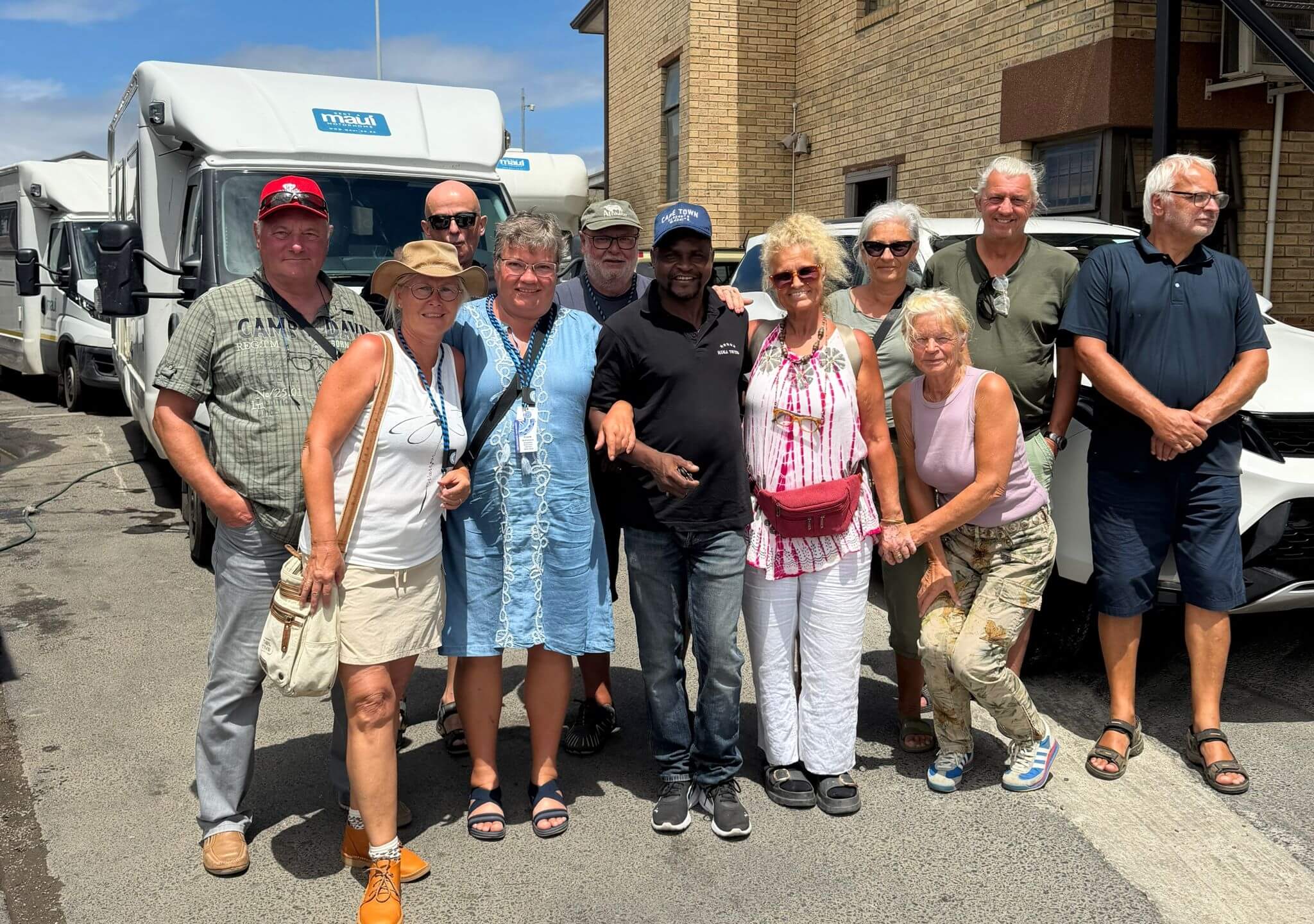 Auf dem Weg nach Cape Town durchqueren wir nochmals blühende Landschaften, die von dem Fleiß der Bewohner zeugen, das Beste aus den schwierigen landschaftlichen Bedingungen herauszuholen. Bei Maui am Airport in CP geht die Übergabe der Fahrzeuge zügig. Unser Bus, der uns zum Hotel bringen soll, ist auch schon da, sodass wir nach dem Verstauen der vielen Koffer den Womo´s, die uns über 8000 km durch das südliche Afrika als Zuhause gedient haben, ade sagen können. Wir machen noch ein Gruppenfoto mit unserem Mechaniker und dann geht es zur Erkundung des Western Cape mit der Hauptstadt Kapstadt. Auf dem Weg nach Down Town wurden wir wieder mit den sozialen Problemen der Ballungszentren konfrontiert. Die Straße führte kilometerlang an einem der vielen Townships von CT entlang. Im Hotel war dann erst mal Duschen und Relaxen angesagt. Am späteren Nachmittag treffen wir uns zur Besprechung der nächsten Tage. Danach schwärmen alle aus, um die nähere Umgebung des Hotels kennenzulernen.