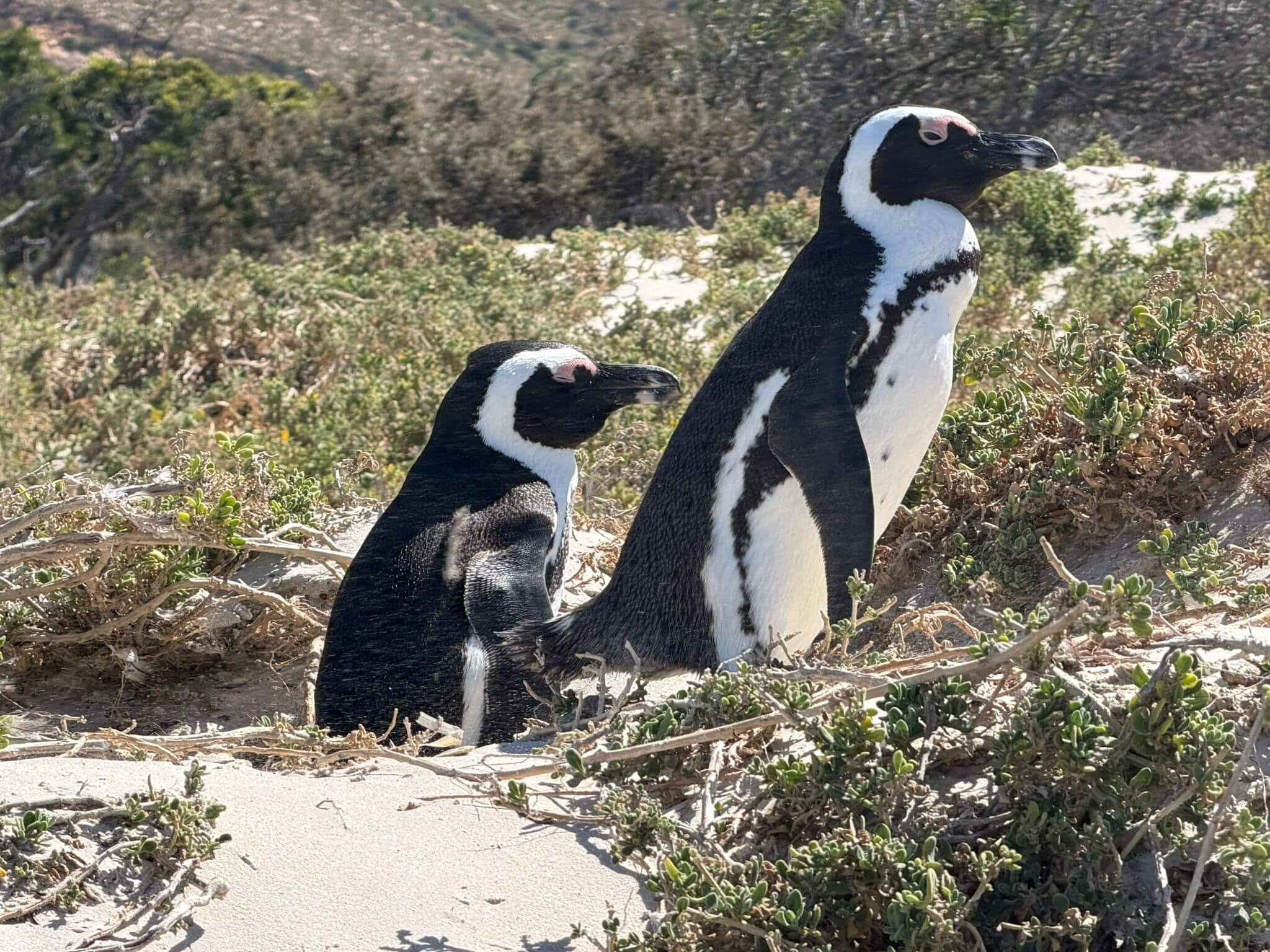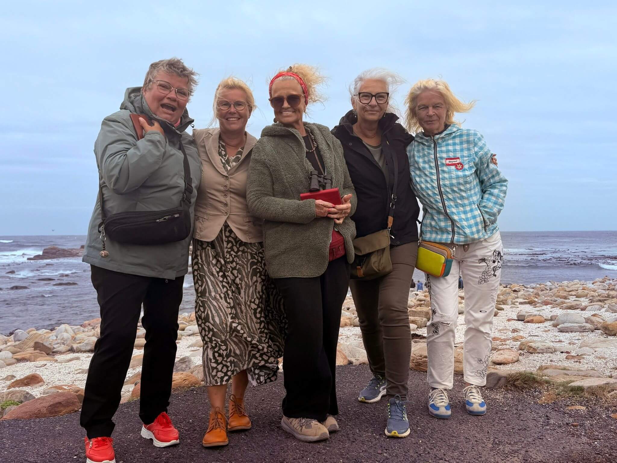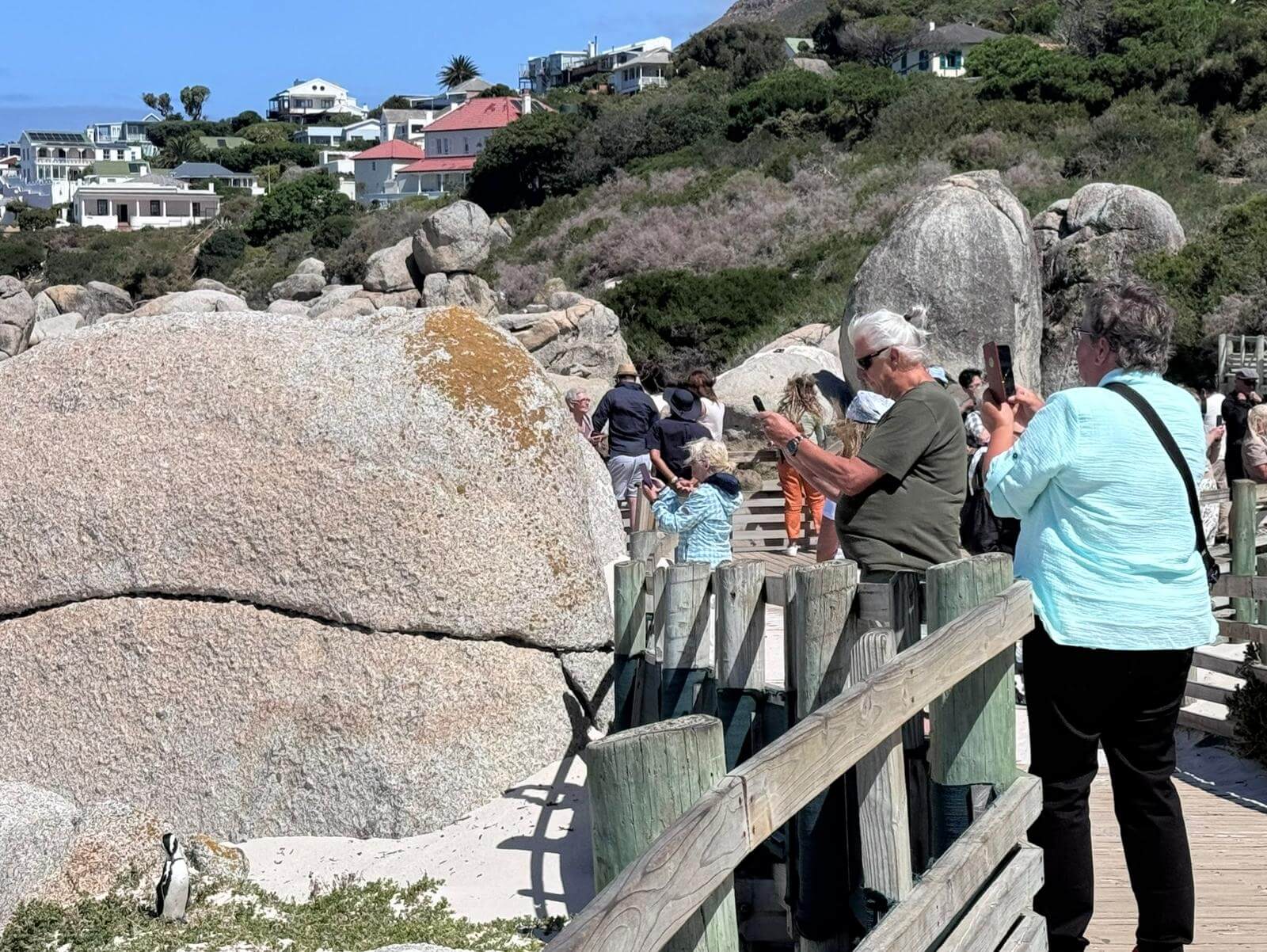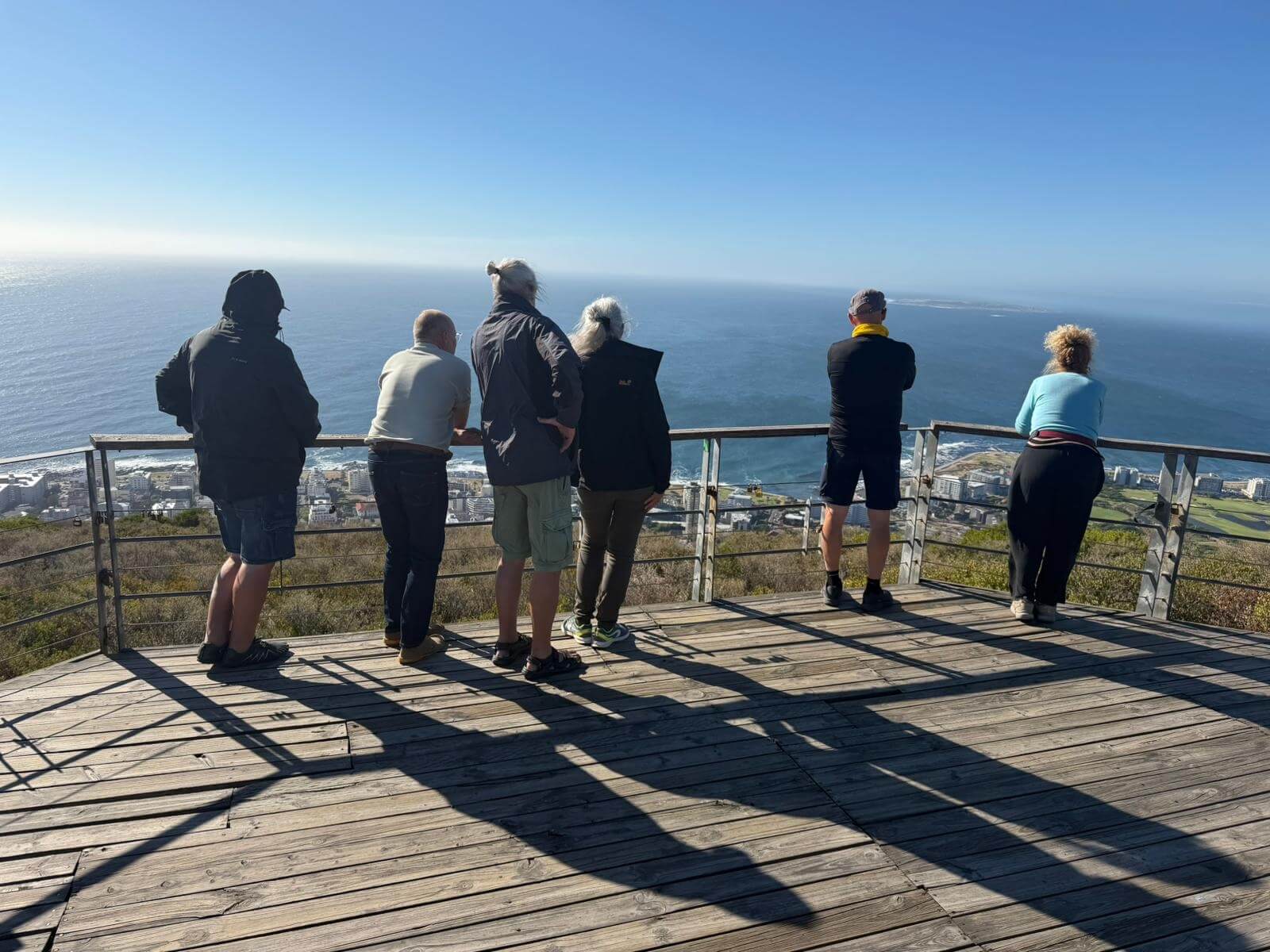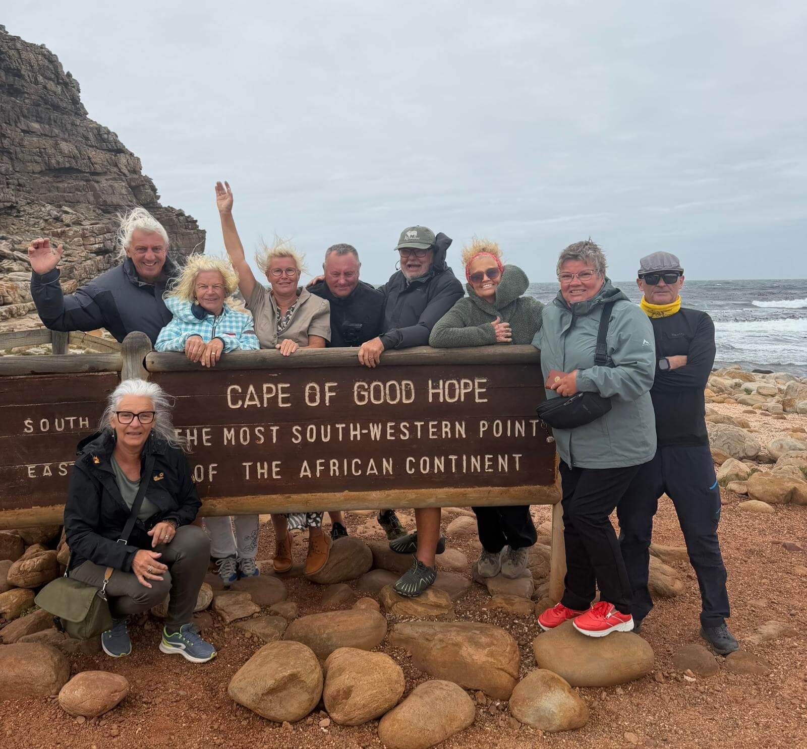 Am Morgen erwarten uns Alain und unser Fahrer Denovan zur gemeinsamen Besichtigung von Kapstadt und zur Fahrt zum Kap der Guten Hoffnung. Leider findet heute die jährliche Parlamentseröffnung Sona in Kapstadt mit dem Präsidenten und vielen geladenen Parlamentariern statt. Das verhindert wegen vieler gesperrter Straßen, dass wir durch die Innenstadt fahren. Wir erfahren trotzdem während unserer Busfahrt authentisch und sehr informativ vieles über das Leben in Südafrika und besonders viel über das Leben in CT. Es geht entlang der Westküste vorbei an langen Traumstränden zum Kap der Guten Hoffnung. Natürlich wissen wir, dass es ein sehr verbreiteter Irrtum ist, diesen Punkt als den Zusammenfluss von Indischem und Atlantischem Ozean zu bezeichnen. Nach den obligatorischen Fotos und nach dem Besuch des Leuchtturms am Cape Point umrunden wir die False Bay und kehren zum Lunch in ein kleines Restaurant am Meer ein. Die Seafood-Platte oder das Steak munden allen und so können wir gestärkt noch eine Pinguinkolonie besuchen und diese putzigen Tiere aus nächster Nähe beobachten. Obwohl der Nachmittag sich schon seinem Ende zuneigt, besuchen wir noch den Signal Hill mit seiner wunderschönen Aussicht über CT und seiner Umgebung. Den Abend verbringen viele in der nahen Umgebung des Hotels, da die Fahrt zur Waterfront aufgrund der noch gesperrten Straßen zu lange dauern würde. Danach heißt der Treffpunkt Hotelbar.