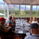 Heute besuchen wir eines der bekanntesten Distrikte in der Provinz Westkap, Stellenbosch. Unseren ersten Stopp legen wir bei der Kellerei KWV ein, die Kooperatiewe Wijnbouwers Vereniging. Diese ehemalige Winzergenossenschaft ist heute eine Aktiengesellschaft. 1918 gegründet, bietet diese Kellerei ihren Besuchern nicht nur ein breites Spektrum an alkoholischen Getränken, vom Brandy über Liköre bis zu guten Weiß- und Rotweinen. Auch die Führung durch die Kellerei mit ihren riesigen Weinfässern, die zum Teil mit dekorativen Holzreliefs versehen sind, ist berauschend. Den nächsten Stopp legen wir bei Anura ein. In der sehr gepflegten Anlage gibt es u. a. auch eine kleine Brauerei und Käserei. Von den ausgezeichneten Produkten können wir uns auch hier bei einer Verkostung überzeugen lassen. Danach geht es zum Lunch mit einer weiteren Weinverkostung in die wacklige Brücke – Rickely Bridge in Frenchhoek, dem Franzoseneck. Die Brücke hat es wahrlich in sich, wegen ihrer geringen Breite. Aber Denovan kommt ohne Schrammen durch und das Essen lohnt die Fahrt. Anschließend besuchen wir die Universitätsstadt Stellenbosch. Viele Straßenkaffees stehen den 30.000 Studenten offen. Und das Leben brodelt am Freitag. Es gibt viel zu sehen und zu kaufen. Im Hotel angekommen, werden zunächst die erworbenen vielen Produkte im Zimmer verstaut. Dann geht es wieder an die Waterfront und abends an die Bar.