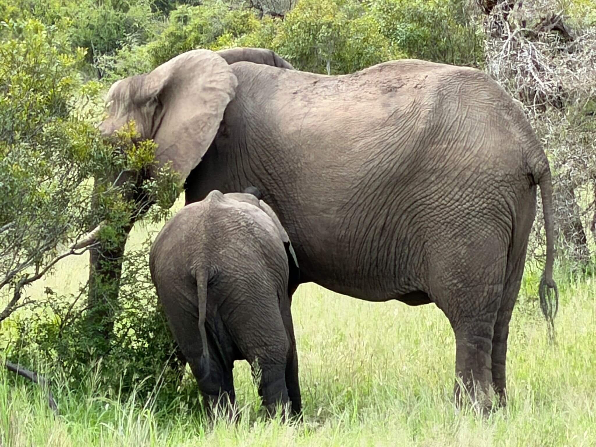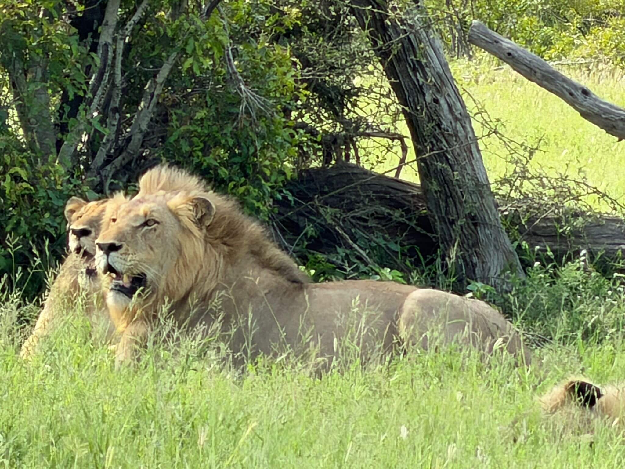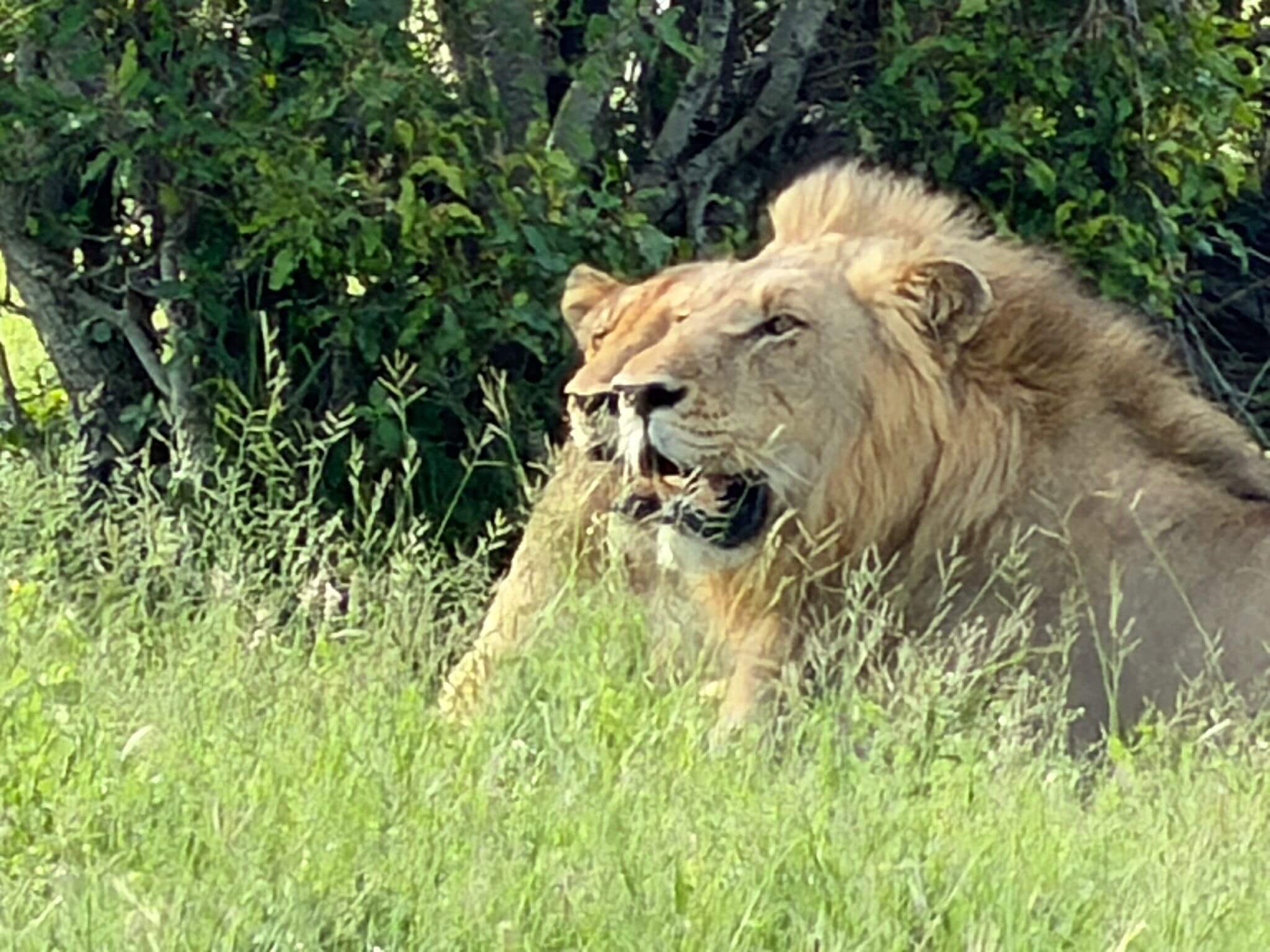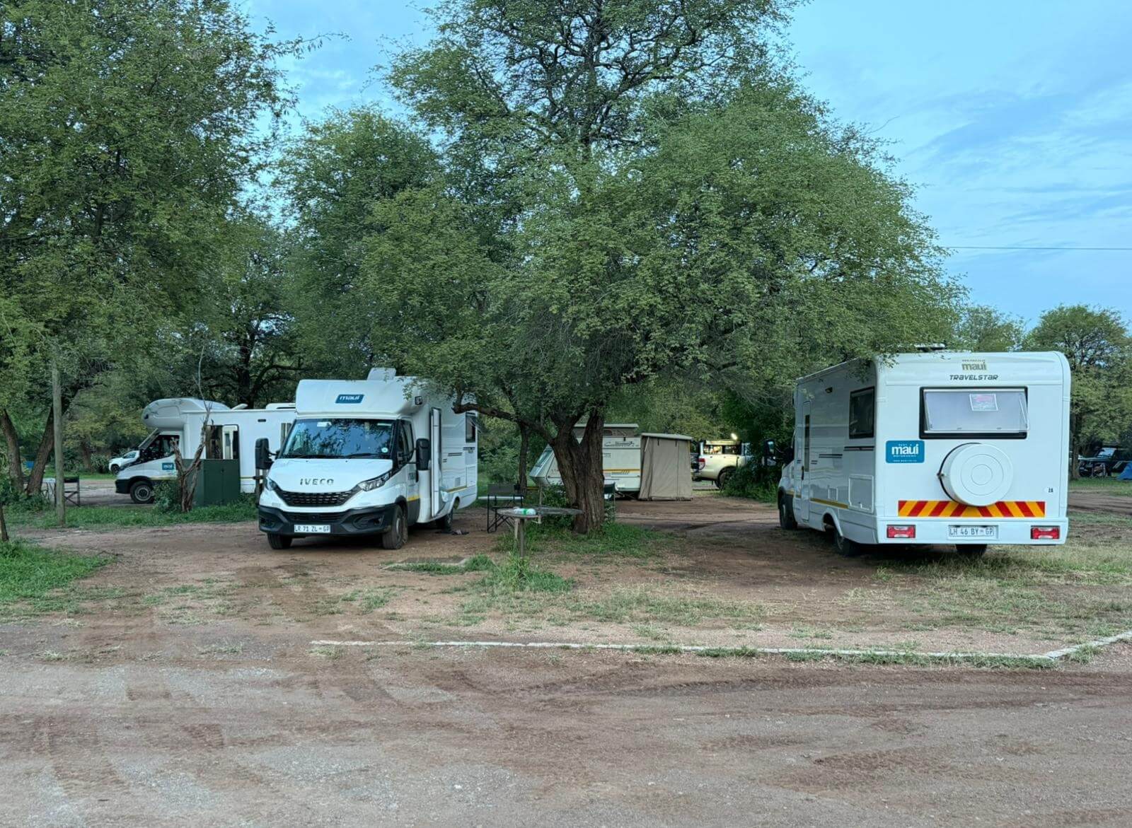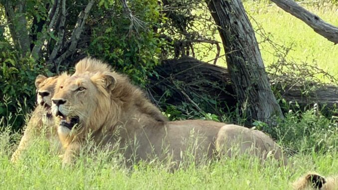 Die Fahrt des heutigen Tages bringt uns in den Kruger N. P. Zuvor fahren wir jedoch am Rand des Blyde River Canyons entlang, mit traumhaften Aussichtspunkten in den Canyon. Leider behindert ein dichter Nebel am Morgen die Aussicht. Dieser verzieht sich aber nach geraumer Zeit, sodass die Sehenswürdigkeiten entlang der Route bestaunt werden können. Nach den „Three Sisters“ ist der nächste Abstecher zu den „Drie Rondawels“ lohnenswert. Von einem herrlichen Aussichtspunkt sieht man neben dem 1944 m hohen Marieskop, drei runde Berggipfel mit leicht spitzen Gipfeln, die den traditionellen runden oder ovalen afrikanischen Gehöften sehr ähnlich sind, die aus lokalen Materialien hergestellt werden und als Rondavels bezeichnet werden. Zusammen mit God’s Window sind die Three Rondavels ein Highlight jeder Reise entlang des drittgrößten Canyons der Welt. Nach einer „ruhigen“ Fahrt erreichen wir in Orpen einen Eingang zum Kruger N. P. Dieser Park ist das größte Wildschutzgebiet Südafrikas. 1898 unter dem damaligen Präsidenten Paul Kruger gegründet, leben heute auf einer Fläche von mehr als 20 000 km² neben den „Big Five“ über 140 weitere Säugetierarten, von anderen Tierarten gar nicht zu sprechen. Unser erstes Camp ist Satara. Auf dem Weg dorthin erfahren wir schon intensiv, was uns in den nächsten Tagen im Park erwartet. Tiere über Tiere und alles in freier Wildbahn. Am Abend treffen wir uns, um einige Informationen für die Schleichfahrten und die Weiterfahrten zu unseren nächsten Camps im Krüger auszutauschen. Außerdem wollen wir noch einmal gedanklich unsere morgige erste Campertafel vorbereiten. Wegen der großen Hitze, die es schon tagsüber auf über 35 °C gebracht hat, verzichten wir auf das geplante Lagerfeuer. Was uns jedoch nicht davon abhält, mit begeisterten Gesprächen über die ersten gesehenen Tiere inklusive Löwen den weiteren Abend zu füllen.