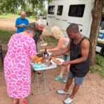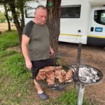 Der Tag war angefüllt mit Tiere entdecken und fotografieren. Am Abend fand unsere erste Campertafel statt. Die Reiseleitung hatte „ausgewachsene“ Steaks besorgt, die von Frank fachgerecht in leckeres Essen verwandelt wurden. Dazu gab es die von allen beigetragenen Salate, Gemüse etc. Bei einigen auflockernden Getränken gab es dann noch lustige Gespräche bis in den späten Abend.