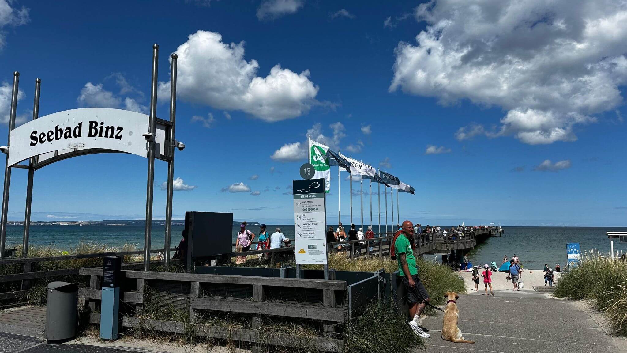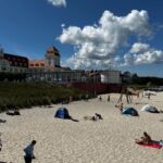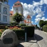 Von Sassnitz führte unser Weg vorbei an dem Fährhafen Mukran mit dem neuen und umstrittenen LPG-Terminal, sowie im weiteren Verlauf über Prora nach Binz. Prora ist ein Ortsteil der Gemeinde Binz und ging hervor aus dem unvollendet gebliebenen ehemaligen KdF-Komplex, der geplant 20.000 Urlaubern gleichzeitig Erholung und Abwechslung an der Ostsee bieten sollte. Der Koloss sollte ursprünglich das längste Gebäude der Welt mit 4,5 km werden. Das Ostseebad Binz ist mit seinen weißen Villen der größte Urlaubsort auf der Insel. Dort angekommen, spazierten wir gemütlich in Richtung Zentrum und passierten dabei Teile der wunderbaren Uferpromenade bis zur 370 m langen Seebrücke. Jeder unserer Gäste konnte dann, je nach Vorlieben, Binz für sich erkunden. Man konnte wunderbar in der Sonne ein Eis genießen, bummeln und shoppen, sich am feinen Sandstrand hinsetzen oder auch ein kühles Getränk ordern. Einige Gäste nutzen die Zeit für ein Mittagessen wie zum Beispiel Fischgerichte oder Padta mit Meeresbewohnern bei Gosch, mit einem Gläschen Wein, Bier oder schlicht Wasser. Faszinierend ist auch die altehrwürdige Bäderarchitektur mit Ihren weißen Häusern/Villen und das beeindruckende Kurhaus mit Nobelhotel.