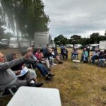 Auf Bornholm angekommen, waren wir dann froh, dass alle ihren Camper auf der großen Fähre wieder gefunden und gut von Bord gekommen sind. Die Anfahrt zu unserem schön gelegenen Campingplatz oberhalb der Küste und gleich am Stadtrand war kurz und problemlos. Dort wartete der Chef Morten schon auf uns und hat uns ein wunderschönes Areal, so wie im Vorfeld vereinbart, zugewiesen. Hier konnten wir als Gruppe zusammen stehen, jedoch wurde auch teilweise nochmals umgeparkt, um den Fernsehempfang sicherzustellen. Auch unser einmaliges Gespann (Unimog als Zugfahrzeug für den Wohnwagen) fand auf dem großzügigen Platz locker sein Plätzchen für die nächsten 3 Nächte.