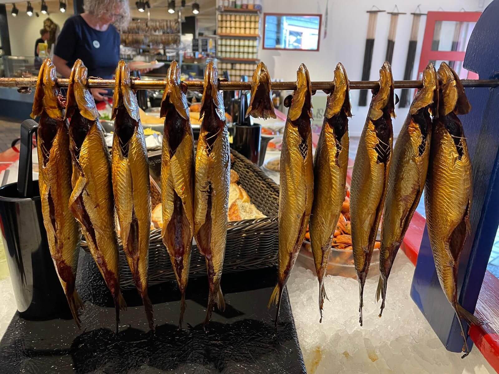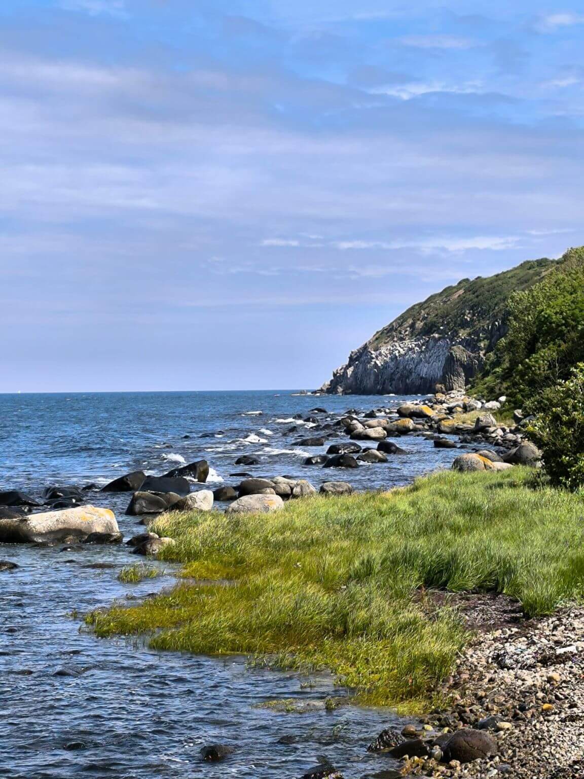Am Morgen stieg uns der Duft von frisch gebackenen Brötchen auf dem Weg ins Sanitärgebäude in die Nase. Morten hatte in seinem Ofen nicht nur leckere Brötchen, sondern auch feine Croissants für uns zubereitet. Nachdem es aufgrund der Wetterlage mit bewölktem Himmel nicht eilte, konnten wir die Backwaren in Ruhe verköstigen (naja…. – fast alle, Jugend forscht war schon unterwegs). Langsam ist der Rest dann zur Erkundung von Bornholm aufgebrochen, teilweise auch mit Fahrrad, Unimog, Pkw oder Liner. Die ersten Highlights auf der Route ließen nicht lange auf sich warten. Für die einen war es, am Ende einer kleinen Sackgasse und nach einem alten Fischerdorf, eine wunderschöne Wanderung an der Küste, für die anderen gleich die Stadt Rönne oder die Verlockungen einer Fischräucherei.