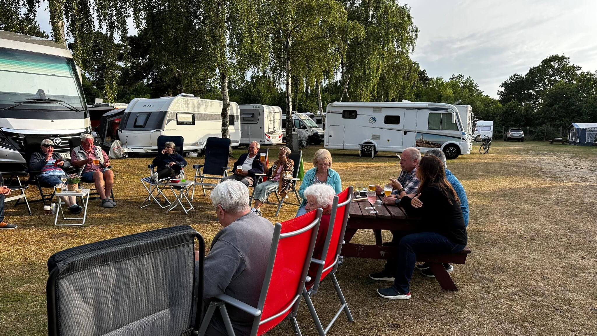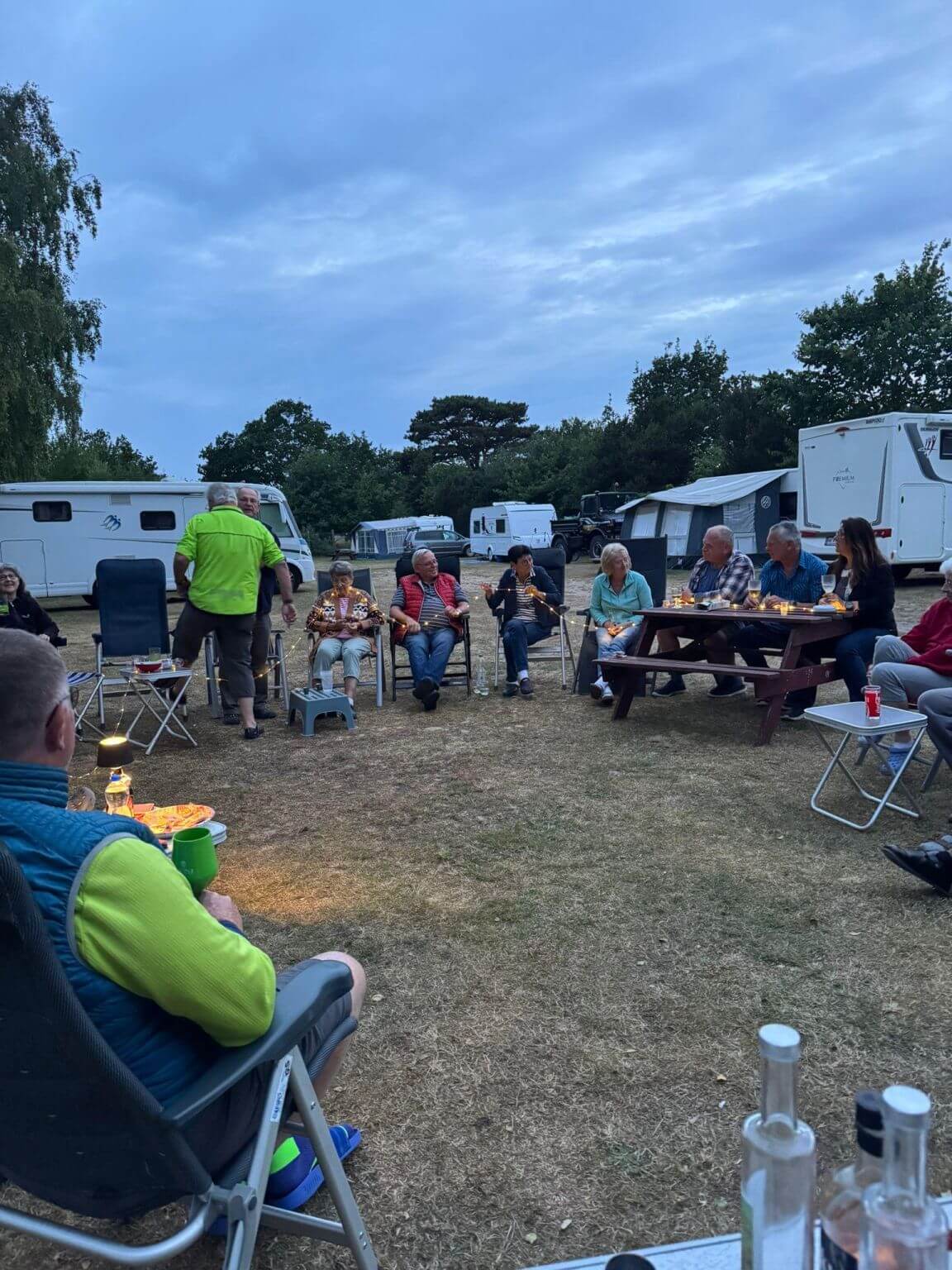 Zum Abschluss eines gelungenen Tages haben wir uns in der Abendsonne auf dem Campingplatz in lockerer Runde (und alle waren dabei – einfach eine tolle Truppe: unkompliziert, lustig, jeder kann mit jedem, alle haben Freude dabei, immer gute Laune und genießen es bei Stimmung, guten Gesprächen mit viel Schmäh, den Tag gemeinsam ausklingen zu lassen) zusammengesetzt bei Freibier von Gitta und Josef sowie ausreichend weiteren geistigen Getränken. Es war einfach nur schön und ein toller Abend – herzlichen Dank von meiner Seite, besser geht’s nicht (natürlich durfte die KUGA Hymne nicht fehlen).