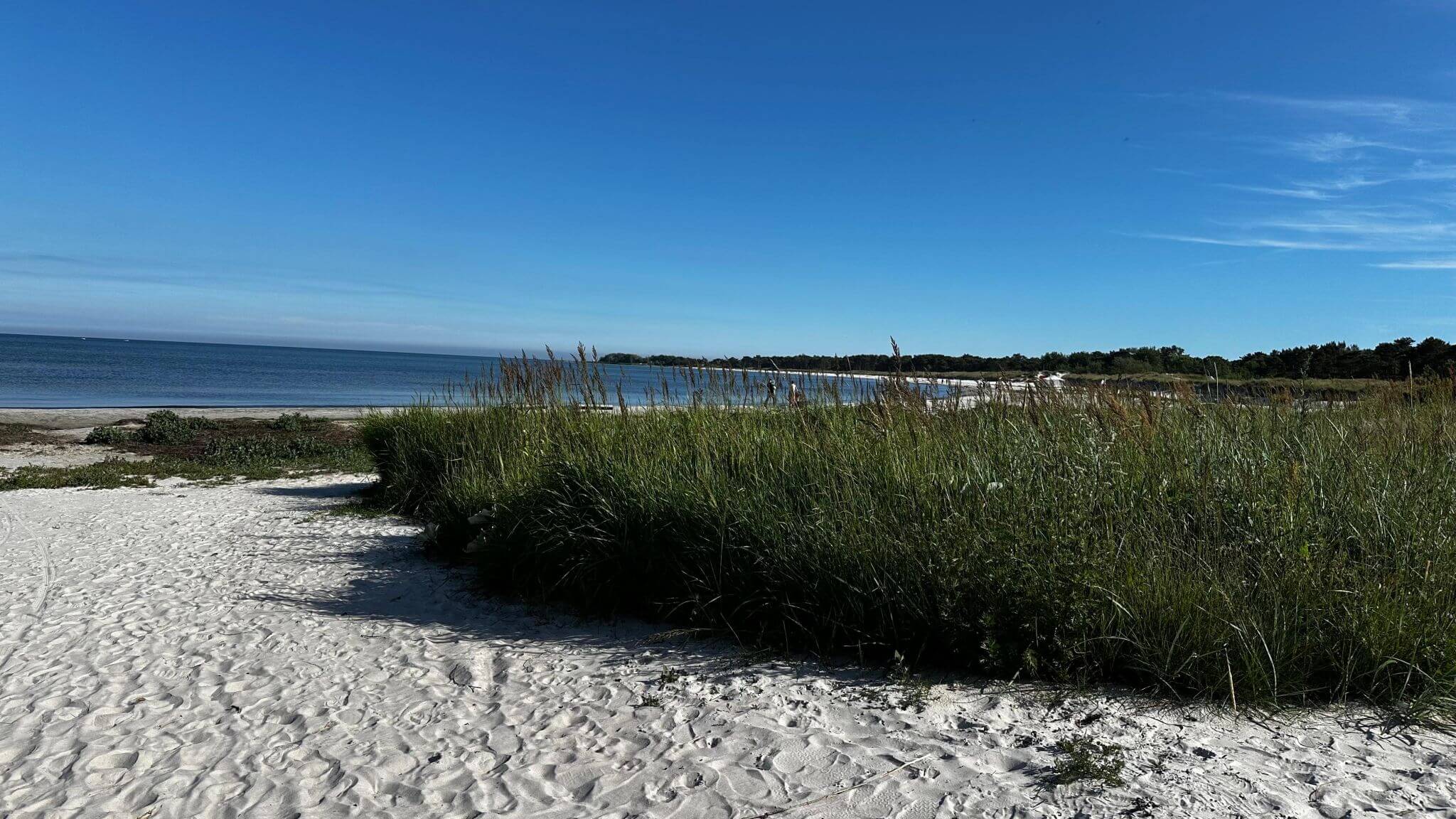 Heute Morgen war es auch um 8:00 Uhr noch erstaunlich ruhig – ob das an der guten Luft zum Schlafen liegt, an dem nicht ganz perfekten Wetter oder am intensiven Vorabend? Nachdem es von Morten auch wieder leckere Brötchen gab, kam so langsam etwas Betriebsamkeit auf und wir konnten wieder gut gelaunt und unternehmungslustig in den Tag starten. Offiziell war heute der Süden und Süd-Osten der Insel Bornholm zu erkunden. Natürlich steht es jedem individuell frei, sich die Tage und die Routen, je nach Vorlieben und Interesse, selbst einzuteilen. Somit sind einige früher und einige etwas später gestartet. Andere haben den Tag grundsätzlich gemütlich angehen lassen. Auch kann man gut vom Campingplatz aus den nahe gelegenen und sehr feinsandigen Strand aufzusuchen und spazieren gehen. Auch die Erkundung der näheren Umgebung mit dem Fahrrad hat seinen Charme.