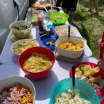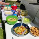 Am Nachmittag treffen wir uns zur Campertafel. Es werden die Grills aufgebaut, ein Buffet vorbereitet und auch an Getränken fehlt es nicht. Es geht uns richtig gut.