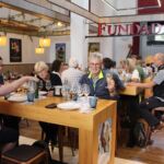 Wie fast allabendlich treffen wir uns zu unserer regelmäßigen Besprechung. Danach gehen einige im Restaurant des Campingplatzes zum Essen, andere sitzen noch in lockerer Runde zusammen.