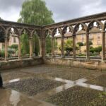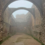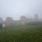 Nach einer ruhigen Nacht starten wir zu unserem 2. Fahrtag – Ziel: Pamplona. Das Wetter ist heute sehr durchwachsen: von Sonnenschein, Nebel, Regen bis Gewitter war alles geboten. Die ersten ca. 100 km fahren wir auf der Autobahn durch eine Region, in der großflächige Landwirtschaft betrieben wird. Danach bietet die Fahrt sehr schöne Besichtigungsmöglichkeiten. Unsere Reiseleiter haben bei der gestrigen Besprechung viele Tipps gegeben, sodass sich jeder sein individuelles Tagesprogramm zusammenstellen konnte. Als Erstes besichtigen wir Castillo de Loarre, eine der schönsten romanischen Burgen Spaniens aus dem 11. Jhd., wo auch Hollywood gedreht hat. Leider können wir die Burg im Ganzen und den sonst wundervollen Fernblick nicht genießen, da der Berg von dichtem Nebel umhüllt ist.