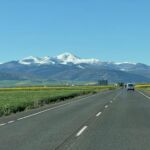 Die Nacht war kalt; Temperaturen um den Gefrierpunkt. Doch am Morgen haben wir Glück: Die Sonne scheint bei hervorragender Fernsicht. Wir fahren in Richtung Süden. Vor uns sehen wir die schneebedeckten Gipfel der Sierra de la Demanda.