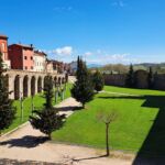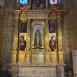 Als Erstes kommen wir nach Santo Domingo de la Calzada, einer der bedeutendsten Pilgerstationen am Jakobsweg. Sehenswert ist die Kathedrale mit ihrem 70 m hohen Turm, von dem aus man heute eine herrliche Aussicht hat. In der Kathedrale selbst ist die Grabstätte des Heiligen Domingo sehenswert und ein lebender weißer Hahn mit weißer Henne in einem Käfig gegenüber. Dazu gibt es auch eine schöne Legende.