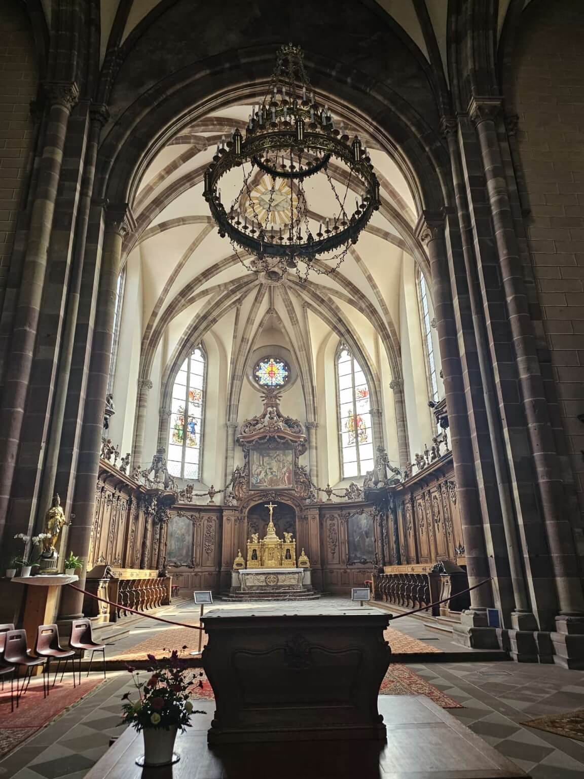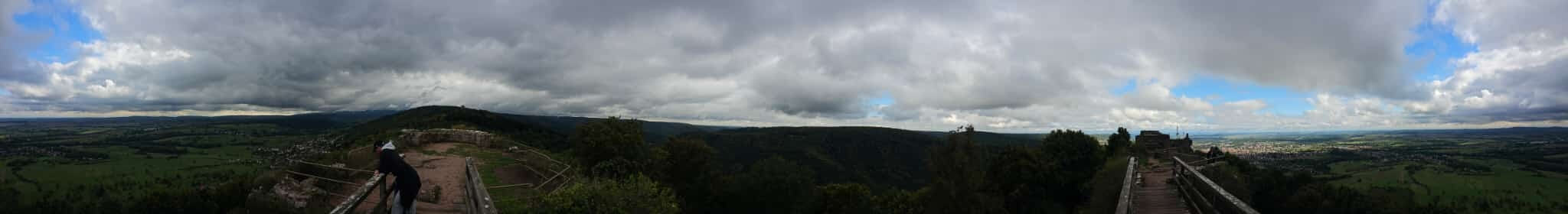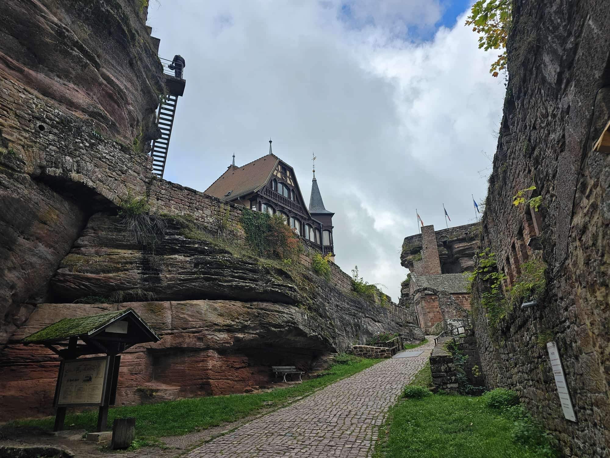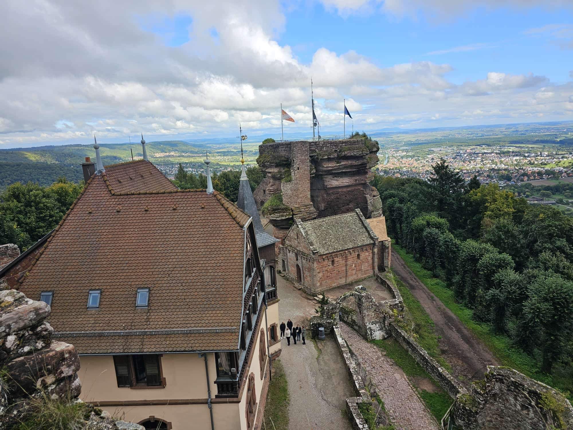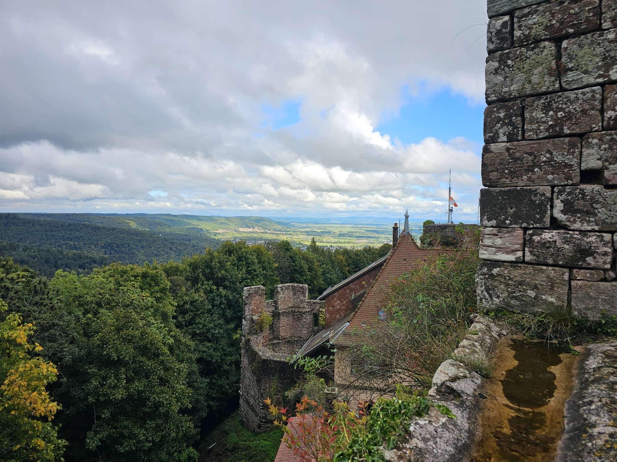 Es ging weiter zur beeindruckend gebauten Burg Hohbarr (Château du Haut-Barr), einer Festung, die erstmals 1123 erwähnt und bis zum 14. Jahrhundert fertiggestellt wurde. Diese Burg thront in 470 m Höhe über dem Tal der Zorn und bietet eine herrliche Aussicht. Deshalb, und weil von dort aus auch bei gutem Wetter der Straßburger Münster sichtbar ist, trägt Sie auch die Bezeichnung „Auge des Elsass“.