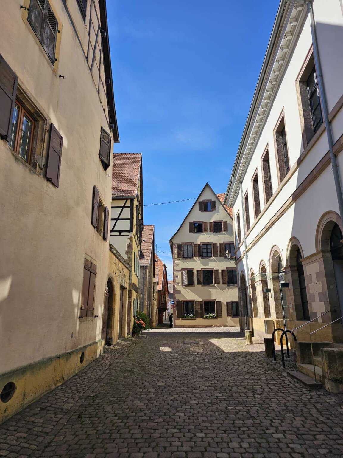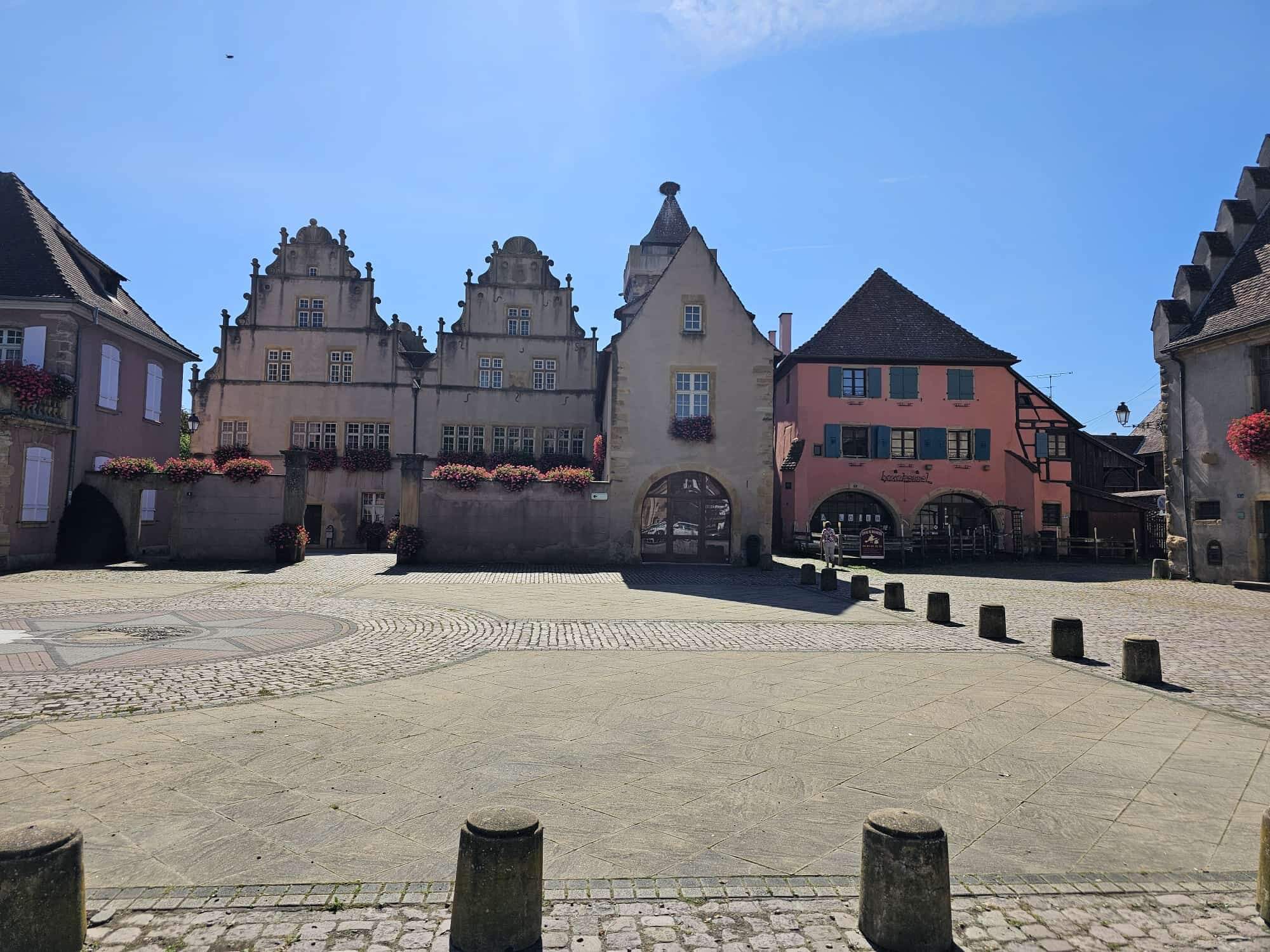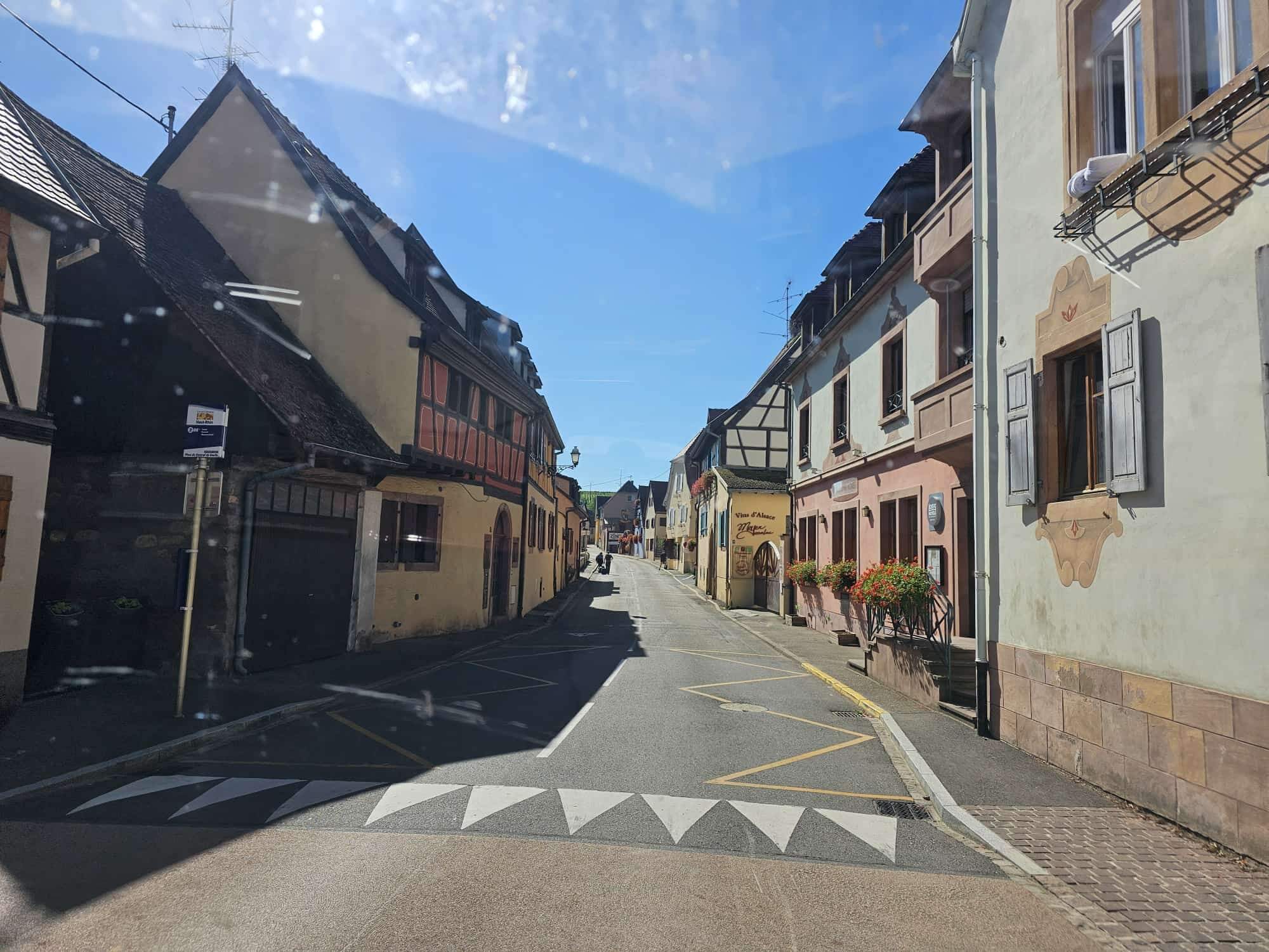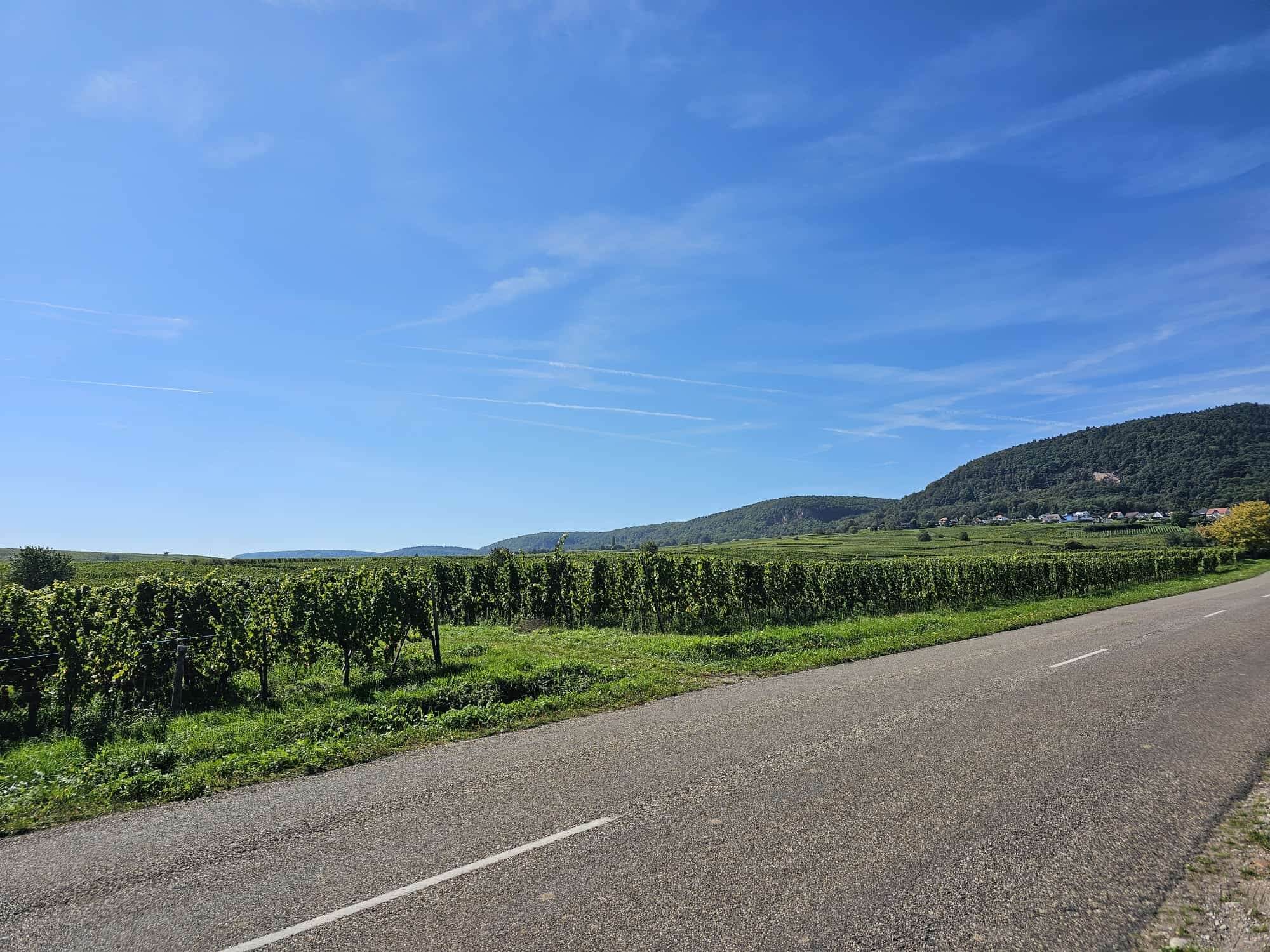 Heute hatten wir den ersten Fahrtag unserer Tour. Wir erkundeten gemeinsam die Elsässer Weinstraße (route des vins d’Alsace) mit ihren unzähligen Weinbergen und malerischen Ortschaften. Unser Weg führte uns durch Eguisheim, in dem in der Römerzeit der Grundstein des Weinbaus im Elsass gelegt wurde. An diesem Samstag war bestes Spätsommerwetter, und damit brauchte man leider schon viel Glück, einen ausreichend großen Parkplatz zu ergattern, um sich diesen schönen Ort genauer anzusehen.