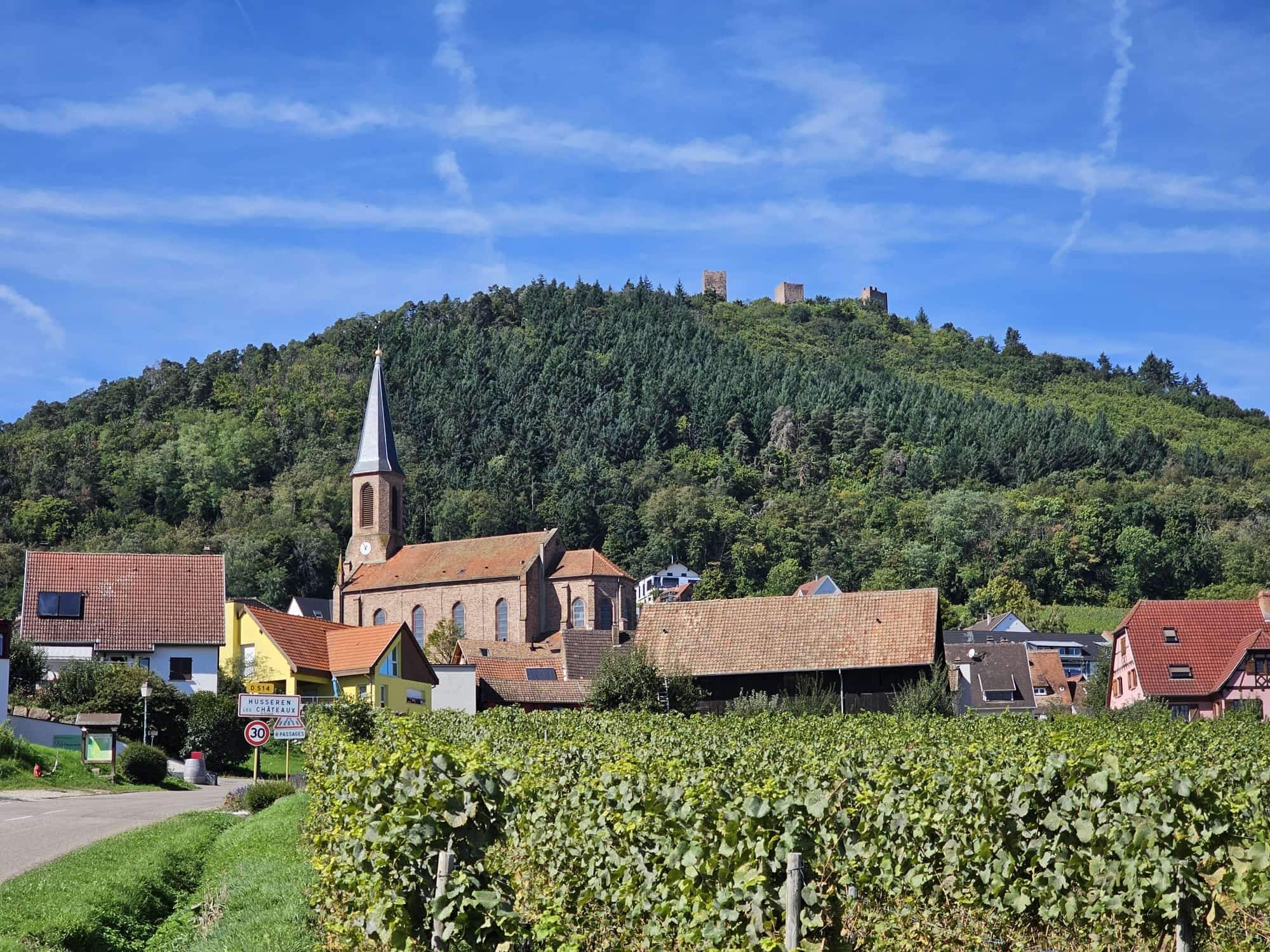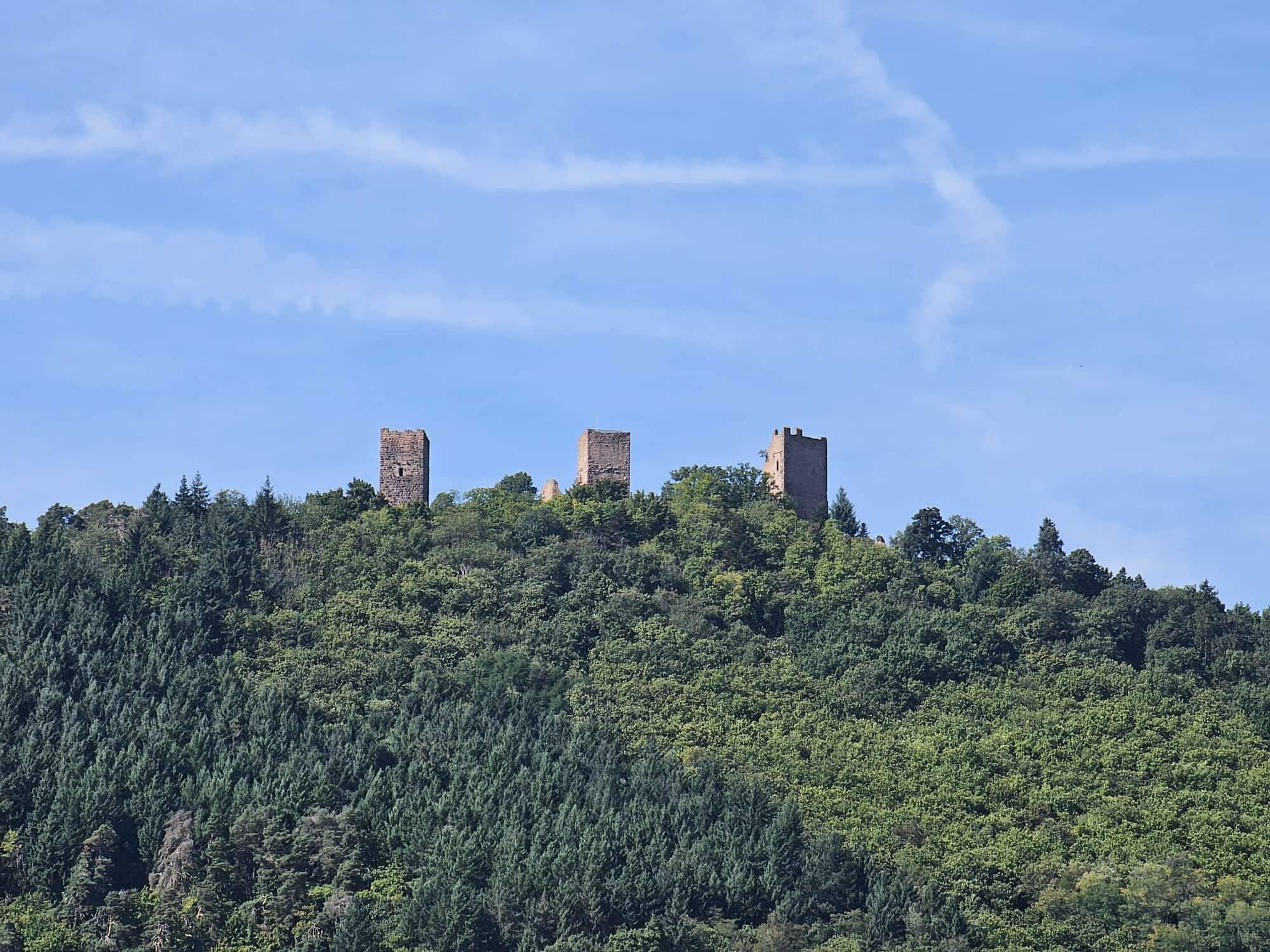 Auf dem Weg zur nächsten Ortschaft (Husseren-les-Chateaux, mit 380 m der höchstgelegene Ort der Weinstraße) hat man einen wunderbaren Blick auf die drei Türme der Burgruinen Haut-Eguisheim. Diese Türme gehörten ursprünglich zu drei eigenständigen Burgen aus dem 11., 12. und 13. Jahrhundert.