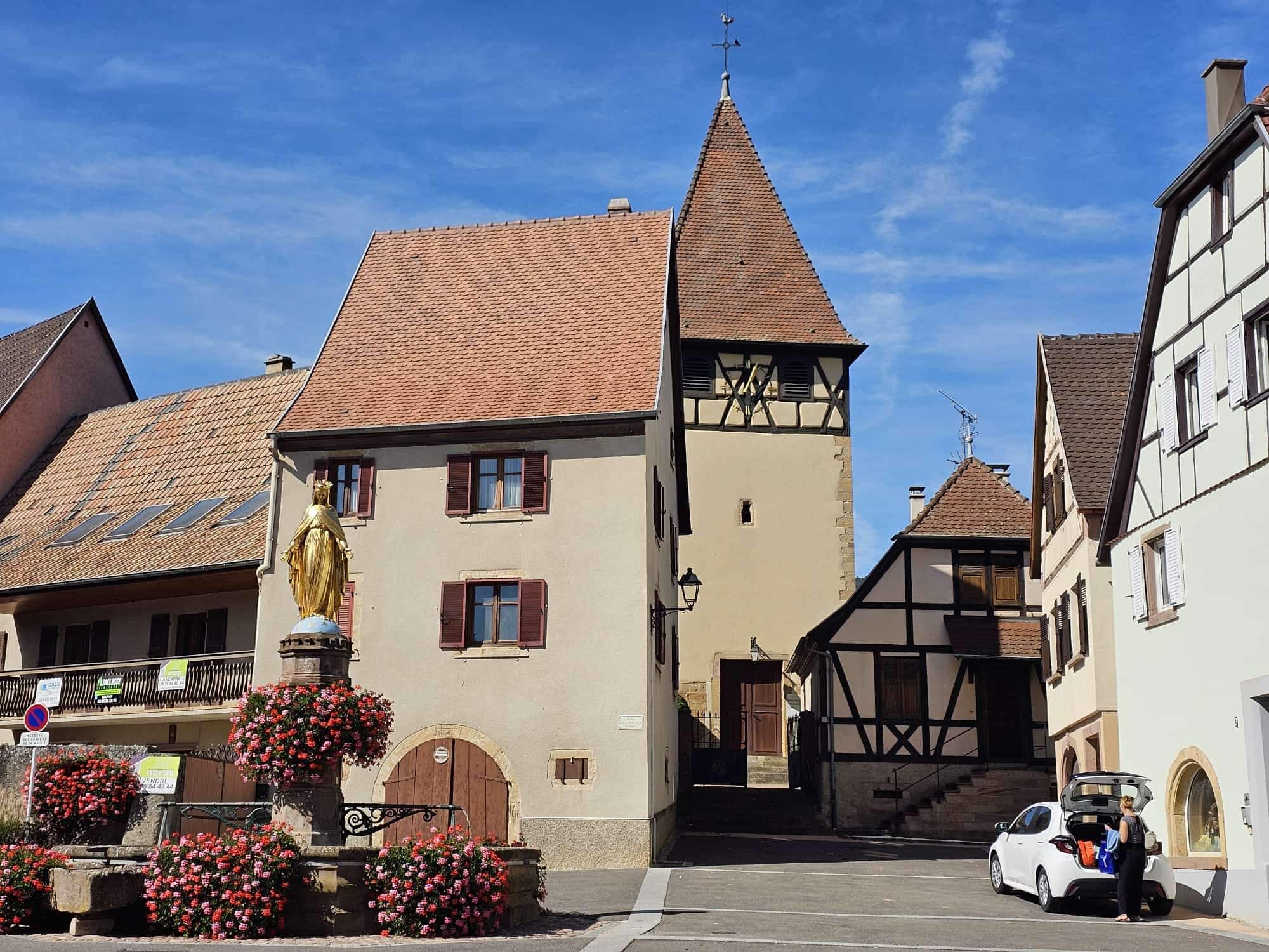 nach Rouffach, das, mit seiner Architektur und dem Blumenschmuck, das „Postkarten-Elsass“ darstellt. Hier gibt es unter anderem den Hexenturm „Tour des Sorcières“ aus dem 13. – 15. Jahrhundert, die Kirche Mariä Himmelfahrt (Eglise Notre-Dame de l’Assomption), die von der zweiten Hälfte des 11. Jahrhunderts bis 1508 gebaut wurde, und den riesigen Marktplatz zu sehen.