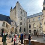 Am vorletzten Tag unserer Frankreich-Reise ging es früh los. Um 8.00 Uhr holte uns der Bus am Campingplatz ab und wir fuhren bei bewölktem Himmel nach Dijon. Dort trafen wir uns mit Silvan, unserem heutigen Stadtguide. Wir begangen unseren Rundgang durch eine sehr schöne Stadt, bei der man das Gefühl hatte, die Zeit sei im vorigen Jahrhundert stehen geblieben. Silvan erläuterte uns, mit einem leichten französischen Akzent sein Dijon. Die Ursprünge reichen bis in die römische Zeit zurück, als die Siedlung Divio an der Via Agrippa (der Römerstraße von Lyon nach Boulogne-sur-Mer) entstand. Im frühen Mittelalter entwickelte sich Dijon zu einer wichtigen Siedlung im Herzogtum Burgund und ab dem 11. Jahrhundert war Dijon die Hauptstadt der Herzöge von Burgund, die über ein mächtiges und kulturell bedeutendes Fürstentum herrschten. Die Blütezeit war vom 14. bis 15. Jahrhundert unter den berühmten Herzögen Philipp der Kühne, Johann Ohnefurcht, Philipp der Gute und Karl der Kühne. Dijon wurde ein kulturelles Zentrum mit Verbindungen zu den Niederlanden, Flandern und Italien. Nach dem Tod Karls des Kühnen (1477) fiel Burgund an die französische Krone. Dijon blieb wichtig als Verwaltung und Gerichtsstand (Parlament der Bourgogne) und war eine repräsentative Stadt. Palais und Barockgebäude entstanden und 1722 wurde die Akademie der Wissenschaften, Künste und Literatur von Dijon gegründet. Während der französischen Revolution 1789-1799 spielte die Stadt zwar keine zentrale, aber dennoch bedeutende regionale Rolle als Hauptstadt der historischen Provinz Burgund. Nach der Revolution wurde Dijon, Hauptstadt des neuen Departements Cote d‘Or, das im Zuge der Revolution anstelle der alten Provinzen geschaffen wurde. Viele kirchliche Besitztümer wurden ereignet und versteigert. Die Abtei Sankt Benigne wurde aufgelöst und später in eine Kathedrale umgewandelt. Dijon blieb ein wichtiges Verwaltungszentrum in Frankreich, wurde im 19. Jahrhundert modernisiert und ist heute die Hauptstadt der Region Bourgogne-Franche-Comté. Berühmt ist die Stadt auch für ihren Senf (moutarde de Dijon, was allerdings nur ein Rezept ist), den Weinhandel und ihre gut erhaltene Altstadt. U.a. Mit dem Palais des Ducs et des États de Bourgogne, dem ehemaligen Sitz der Herzöge von Burgund und dem Musée des Beaux-Arts mit einer bedeutenden Kunstsammlung, darunter Grabmäler der Herzöge. Dieses Museum wurde komplett für 60 Millionen Euro renoviert und neu gestaltet. Es befindet sich im Herzogspalast von Dijon, mitten in der Altstadt. Es ist eines der ältesten und bedeutendsten Kunstmuseen Frankreichs, mit einer besonders engen Verbindung zur Geschichte, Burgund und der Stadt Dijon selbst. Im Museum selbst kann man Grabmäler der Herzöge von Burgund, Philipp, der Kühne und Johann, ohne Furcht mit den berühmten weinenden Mönchsfiguren finden. Meisterwerke der burgundischen Skulptur von Klaus Schluter sind auch zu sehen. Ein Teil der Ausstellung befasst sich mit europäischer Malerei aus der Renaissance bis zum 20. Jahrhundert und auch die französische Kunst des 18. und 19. Jahrhunderts, sowie zeitgenössische Kunst sind zu sehen. Das besondere ist, dass das Museum kostenlos besucht werden kann. Am Ende des Rundgangs durch das Museum verabschiedete sich unser Reise-Guide und wir machten uns auf den Weg, die Stadt bei perfektem Sonnenschein noch mal persönlich zu entdecken. Das ganze Stadtbild ist außerordentlich, man fühlt sich in die frühere Zeit in Dijon versetzt zu sein. Überall sind Häuser mit wunderbaren Renaissance-Fassaden zu bestaunen. Die alte Markthalle wurde auch erhalten. Erbauer war Gustav Eiffel, ein Sohn der Stadt Dijon. Zu Mittag hatte uns KUGA eingeladen und wir genossen ein Menü in einem gehobenen Restaurant. Mit dem Bus fuhren wir dann anschließend zu unserem zweiten Ziel, einem Hersteller der berühmten Creme de Cassis. Hier erfuhren wir, wie dieses berühmte Getränk, welches insbesondere in der Region Burgund rund um Dijon hergestellt wird, entsteht. Reife schwarze Johannisbeeren, vorzugsweise der Sorte Noir de Bourgogne, werden entstielt, aber nicht gepresst. Die Johannisbeeren werden in Alkohol 96 % eingelegt. Diese Mischung bleibt mehrere Wochen stehen, damit der Alkohol das Aroma, die Farbe und die Inhaltsstoffe der Beeren aufnehmen kann. Dieser Vorgang wird als Mazeration bezeichnet. Anschließend wird die Flüssigkeit abgepresst und gefiltert. Als Nächstes wird Zucker hinzugefügt, damit die Creme de Cassis einen Zuckergehalt von mindestens 400 g Zucker pro Liter, laut französischem Gesetz, hat. Es entsteht ein süßer, dickflüssiger Likör, der sehr gut schmeckt. Hergestellt werden in diesem Unternehmen neben dem Creme de Cassis, auch verschiedene andere Spirituosen aus diesem Produkt sowie Sirup und auch Gelee und Marmeladen. Eine Mitarbeiterin führte uns durch die Produktionshallen und erläuterte uns die einzelnen Schritte. Anschließend hatten wir die Möglichkeit, auch verschiedene Arten der Cassis Zubereitung zu verkosten, ob gemischt in Wein oder Bier oder auch als Sirup. Es ist eine wirklich leckere Angelegenheit. Damit ging ein weiterer spannender Tag auf der Frankreich-Tour zu Ende.