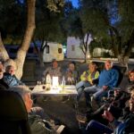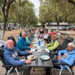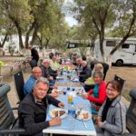 Endlich ist er da, der von vielen ersehnte Ruhetag. Die vergangenen Tage waren gespickt mit vielen Highlights, sodass wir uns alle über etwas Ruhe freuen. Leider haben wir heute Vormittag nicht mehr das tolle Badewetter. Es regnet gelegentlich. Aber einige Reiseteilnehmer machen sich auf den Weg, auf eine von Kuga vorgeschlagene Runde um Sithonia. Es sind nur etwa 100 km und die Strecke bietet auf guter Straße sehr viel Abwechslung. Ab Mittag wird das Wetter besser und die Sonne scheint ab und zu schon durch die Wolken. Für alle steht heute auch die Vorbereitung unserer gemeinsamen Campertafel an. Jeder wird etwas anderes vorbereiten, sodass am Abend ein ansehnliches Buffet entsteht. Das Wetter meint es ebenfalls gut mit uns. Die Sonne sorgt für angenehme Temperaturen für unser kleines Event. Ab 18 Uhr wird der Grill angeheizt und nach einer Stunde sitzen wir alle gemütlich beim Abendessen zusammen. Die Reiseleitung hat Fleisch und Wurst besorgt und Kuga hat auch den Wein für den heutigen Abend bereitgestellt. Stefan hat noch ein Fässchen Bier spendiert. Zusammen mit den vielen verschiedenen schmackhaften Zutaten der Reiseteilnehmer sind wir alle gut und reichlich versorgt. Noch lange sitzen wir gemeinsam beisammen und haben einen schönen Abend.