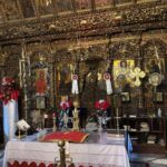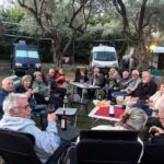 Wir starten neun Uhr in Westpilion mit Thanos, unserem Busfahrer, in Richtung Ostpilion. Nach einem kurzen Fotostopp mit Blick auf die Sporaden machen wir unsere erste Pause in Tsagkaranda, dem größten Dorf in Ostpilion. Nach einem kurzen Fußweg erreichen wir unser Ziel, eine über 1000-jährige Platane. Sie kommt schon sehr eindrucksvoll daher. Wir trinken im Dorf noch einen Kaffee, bevor wir nach Kissos ins höchstgelegene Dorf Ostpilions kommen. Dort können wir eine der schönsten Kirchen Griechenlands besichtigen, die Kirche Agia Marina aus dem 17. Jahrhundert. Sie ist berühmt für ihren Altar, an dem über 60 Jahre gearbeitet wurde. Er besteht aus Holz und ist teilweise mit Blattgold überzogen. Seine Breite beträgt 14 Meter und die Höhe sieben Meter. In Agios Ioannis haben wir uns für das Mittagessen ein schönes Restaurant direkt am Meer ausgesucht. Mittlerweile hat sich die Sonne auch durchgesetzt und wir genießen das schöne Wetter am Strand. Gestärkt setzen wir unsere Rundfahrt fort. Von Theo, unserem heutigen Guide, erfahren wir viele interessante Dinge über das Leben in Pilion sowie über die hier anzutreffende Flora und Fauna. Zum Beispiel, dass es in Pilion über 2.000 verschiedene Heilpflanzen gibt. Wir passieren das Skigebiet des Pilion auf ca. 1.250 m ü. NN und kommen ins Westpilion. Nach einigen Kilometern erreichen wir das wohl schönste Dorf in Pilion Makrinitza. Es erstreckt sich über mehrere hundert Höhenmeter an einem Berghang. Der Ort gilt wegen seiner wunderbaren Aussicht als Balkon von Volos. Wir machen einen kleinen Spaziergang, vorbei an kleinen Souvenirläden und Restaurants, bis zum Dorfplatz. Dort steht eine Platane, welche innen sehr ausgehöhlt ist, sich aber trotzdem bester „Baumgesundheit“ erfreut. Wir fahren durch weitere Dörfer und erreichen gegen 18 Uhr unseren Campingplatz. Wir alle stimmen überein, dass es wieder ein schöner Ausflug war. Den Abend verbringen wir in gemütlicher Runde vor unseren Wohnmobilen auf dem Campingplatz.