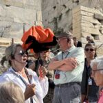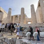 Heute steht die Stadt Athen, die Hauptstadt Griechenlands, auf unserem Programm. Wir starten kurz nach 8 Uhr, um vor dem Ansturm an der Akropolis zu sein. Aber, obwohl wir einen frühen Zeitslot haben, sind wir nicht allein. Viele Besuchergruppen wollen mit uns das Wahrzeichen der Stadt besichtigen. Unsere heutige Stadtführerin Eva erläutert uns die Geschichte der Akropolis und des Baus der Gebäude. Wir erfahren viel über die Bauten der Akropolis. Auch über das Regierungssystem und die Justiz im antiken Griechenland werden wir mit interessanten Details versorgt. Nachdem wir wieder am Bus sind, beginnen wir unsere Stadtrundfahrt durch Athen. Dabei kommen wir an vielen interessanten und historischen Gebäuden vorbei. Wir sehen vor uns den Lykabettus mit seiner kleinen Kapelle, kommen am Panathinaikon-Stadion vorbei, wo die ersten Olympischen Spiele der Neuzeit ausgetragen wurden, wir passieren das Kriegsmuseum und das byzantinische Museum. Weiter geht es vorbei am Verfassungsplatz, an der „Triologie“, bestehend aus Akademie der Künste, Nationalbibliothek und Universität. Wobei sich die Athener Uni mehrheitlich in der Universitätsstadt, 20 Kilometer außerhalb von Athen, befindet. Wir fahren weiter vorbei an der Attica Mall, der katholischen Kirche und dem Parlament. Am Nationalgarten mit dem Hadrianbogen beenden wir unsere Rundfahrt und verabschieden uns von Eva. Den Nachmittag haben wir dann zur freien Verfügung, um die Stadt auf eigene Faust zu erkunden. Zuerst geht es natürlich in die Altstadt „Plaka“ mit ihren vielen kleinen Gassen. Ein empfehlenswertes Ziel ist auch ein Besuch des Lykabettus, dem Stadtberg Athens, den einige Reiseteilnehmer gleich in Angriff nehmen. Dort kann man die kleine Kapelle besichtigen und die herrliche Aussicht auf die Stadt und die Riviera von Athen genießen. Eine Seilbahn erleichtert den Aufstieg auf den 263 Meter hohen Berg. Auf dem Rückweg kann man dann noch durch den Stadtteil Kolonaki bummeln, das eleganteste Viertel Athens. Hier geht es etwas ruhiger zu als in der Plaka. Natürlich kann man die Zeit auch für Einkäufe und den Besuch eines der vielen Museen, Restaurants oder Cafés nutzen. 16:45 Uhr treffen wir uns dann gemeinsam wieder am Hadriansbogen, wo der Bus schon auf uns wartet, um uns zum Campingplatz zurückzubringen. Um 18 Uhr besprechen wir noch den Ablauf der morgigen Inselrundfahrt und die Besonderheiten des nächsten Fahrtages. Danach stoßen wir alle gemeinsam auf Erna aus Österreich an, die ihren heutigen Geburtstag mit uns gemeinsam feiert. Nachdem alle ihr Abendbrot erledigt haben, finden wir uns wieder in kleiner geselliger Runde zusammen und beschließen den Tag gemeinsam.
