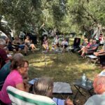 Heute starten wir mit Wolkenhimmel in den Tag. Die von Kuga empfohlene schöne Inselrundfahrt nehmen heute nur wenige Reiseteilnehmer in Angriff. Bernd mit seinem Acht-Meter-Bus traut sich. Er besucht als Erstes bei seiner Rundfahrt als einziger auch die schöne Dirou-Höhle. Diese Tropfsteinhöhle gilt als eine der Hauptattraktionen der Halbinsel Mani. Einzelne Reiseteilnehmer machen nur einen kleinen Strandspaziergang. Die meisten nutzen den Tag, um einfach nur auszuspannen oder anstehende Aufgaben zu erledigen. Am Nachmittag besprechen wir bei einem Glas Wein die nächsten beiden Tage. Wie von Kuga bestellt hat der Regen aufgehört und strahlend blauer Himmel begleitet uns in den Abend. Dann starten die letzten Vorbereitungen für unsere zweite Campertafel. Lutz spendiert Bratwürste und Kuga kleine Chicken-Souvlaki. Jeder hat zudem etwas anderes vorbereitet und trägt so zum Gelingen der Campertafel bei. So steht um 19 Uhr für alle wieder ein reichhaltiges Angebot an Speisen und Getränken bereit. Wir haben einen schönen Abend und ein ruhiger Tag endet in gemütlicher Runde.