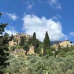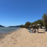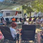 Wir starten heute wieder bei bestem Sommerwetter zu unserem Tagesziel Pilos. Wir werden 200 Kilometer durch eine schöne Landschaft fahren. Wir beginnen mit einer Fahrt in die Berge und werden die zweite Hälfte der heutigen Etappe am Meer entlangfahren. Zuerst geht es in Richtung Sparta. Wer möchte, macht dort einen Stopp und besucht das historische Sparta, den einst neben Athen mächtigsten Stadtstaat Griechenlands. Wir umfahren die Stadt und kommen zur Ruinenstadt Mystra, früher eine prächtige Stadt. Sie wurde im Mittelalter auch Florenz des Ostens genannt. 1760 wurde sie von den Osmanen zerstört und zählt heute zum UNESCO-Weltkulturerbe. Nachdem wir kleinere Ortschaften passiert haben, kommen wir immer tiefer in das Taygétos-Gebirge hinein und haben unseren höchsten Punkt mit über 1300 m ü. NN auf dem Langada Taygétos Pass erreicht. Ein kleines Restaurant lädt zur Einkehr ein. Nun geht es mit traumhaften Ausblicken ins Tal nach Kalamata, einer schönen Küstenstadt. Von da an folgen wir der Küstenstraße Richtung Campingplatz. Dort angekommen erwartet uns neben einem gepflegten Platz ein toller Strand mit Liegen und Sonnenschirmen. Kurz nach 17 Uhr treffen wir uns alle bei Monika, unserem Geburtstagskind, zu einem kleinen Umtrunk. Danach besuchen die meisten von uns eines der vielen Restaurants in der Nähe des Campingplatzes. Direkt am Meer kann man besonders schön sitzen und nach einem langen Fahrtag entspannen.