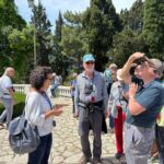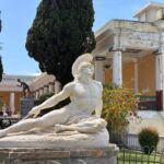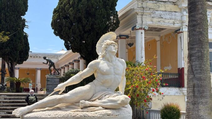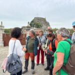 Bei leichtem Nieselregen starten wir zu unserem Busausflug. Unser Busfahrer Nikolas bringt uns zuerst zum bekanntesten Ferienort der Insel, nach Palaiokastritsa. Dort wenden wir und setzen unsere Fahrt durch verschiedene Dörfer und Siedlungen der Insel fort, von denen es mehr als 200 gibt. Wir kommen durch Makrades, Vistonas, Almatades, Troumbetas, Milia und Skripero, um nur einige zu nennen. Im Rogatal machen wir unsere erste Pause, um im ältesten Weingut der Insel den typischen Robola zu probieren. Nach der Weinprobe fahren wir weiter Richtung Achilleon. Während der Fahrt erfahren wir von Christina, unserem heutigen Guide, viel über die Geschichte Korfus und die griechische Mythologie. Im Achilleon können wir leider nur den Park besichtigen, da das berühmte „Sissi-Schloss“ wegen Restaurierung immer noch geschlossen ist. Aber der Besuch des Parks mit der tollen Aussicht übers Meer lohnt sich allemal. Zudem können wir die beiden Statuen des Achilleus, dem größten griechischen Helden des trojanischen Krieges bewundern. Danach geht es weiter über Kanoni, vorbei am Flughafen, zum Mittagessen. Unser Restaurant liegt in Korfu direkt am Meer und wir genießen ein tolles Mittagessen. Nach kurzer Busfahrt erreichen wir die Alte Festung. Dort starten wir, geführt von Christina, einen gemeinsamen Rundgang durch die Altstadt. Wir kommen vorbei am Rathaus, der ältesten Bank Griechenlands, der Spiridonkirche, der Promenade und bummeln durch die Gassen der Altstadt. Nach kurzer Freizeit bringt uns Nikolas zum Campingplatz zurück. Jetzt steht nur noch die Besprechung des Programms der nächsten beiden Tage an, bevor ein erlebnisreicher Tag zu Ende geht.