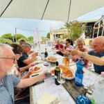 Unsere Tour nach Griechenland und in die Türkei beginnt in Italien. Die Gruppe trifft sich in der Nähe von Ancona auf einem Campingplatz am Rande der Apenninen. Da wir erst am nächsten Tag mit der Fähre nach Patras aufbrechen, beginnt unsere Tour mit viel Gelassenheit am Nachmittag, nachdem alle eingetroffen sind, beim gemütlichen Kennenlernen in der Markischen Sonne. Am Abend treffen wir uns zum Begrüßungsessen im Restaurant des CP. Die Küche hat sich nicht nur viel Mühe gegeben, uns ein sehr schmackhaftes Dinner zu kredenzen, sondern auch so reichlich gekocht, dass wir davon auch viel mit in die Kühlschränke der Womo‘s nehmen konnten. Bei einer lauen Abendnacht mit herrlichem Blick über die Ebene zur Adria und interessanten Gesprächen verging die Zeit wie im Flug. Der Wettergott schickte uns auch das bei dieser Wetterlage unvermeidliche Gewitter erst in der Nacht, sodass unser erster Tag als Start in eine gemeinsame Urlaubsreise mit anderen schon mal die besten Erwartungen befriedigen konnte.