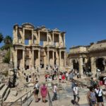 Am Morgen bringt uns ein Bus zur Ausgrabung einer der größten und bedeutendsten Städte Kleinasiens im Altertum. Ephesos ist seit 2015 Weltkulturerbe der UNESCO. Mit unserem Führer haben wir nicht nur einen profunden Kenner der Ausgrabung, sondern auch einen, der Jahrzehnte diese begleitet hat. So haben wir besonders gesehen und erfahren, was nicht zum sonstigen Programm der Führungen gehört. Mit über 200.000 Einwohnern war Ephesos nicht nur eine bedeutende, sondern auch eine der großen Städte des Römischen Reiches. Viele öffentliche Bauten wurden sowohl von der Stadt als auch von wohlhabenden Bürgern finanziert. Dazu zählten eine Marktbasilika zu Ehren des Augustus sowie Tempel für die Kaiser Vespasian und Hadrian, die im Rahmen des Kaiserkultes verehrt wurden. Eines der berühmtesten öffentlichen Gebäude ist jedoch die Celsus-Bibliothek, die zugleich als Denkmal und Mausoleum für Iulius Celsus diente. Nach dem Besuch von Ephesos nutzen wir die Gelegenheit, den sonnabendlichen Wochenmarkt in Selcuk zu besuchen. Die prall gefüllten Stände beeindruckten nicht nur mit einer riesigen Fülle der verschiedensten landwirtschaftlichen Produkte, sondern auch mit ihrer exquisiten Qualität. Und das alles zu günstigen Preisen. Am Nachmittag war Freizeit angesagt. Nach unserer abendlichen Teilnehmerbesprechung der nächsten beiden Tage in Pamukkale ging es zum Essen, um danach die laue Sommernacht bei lockeren Gesprächen und einigen Sundownern gemeinsam zu genießen.