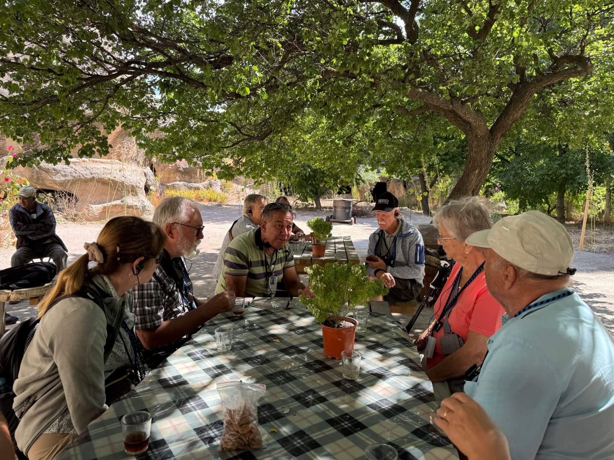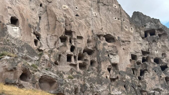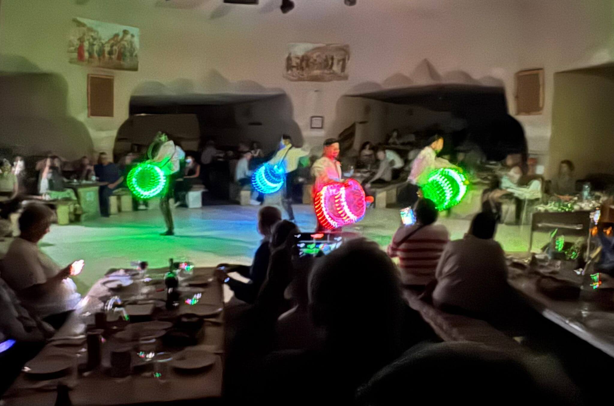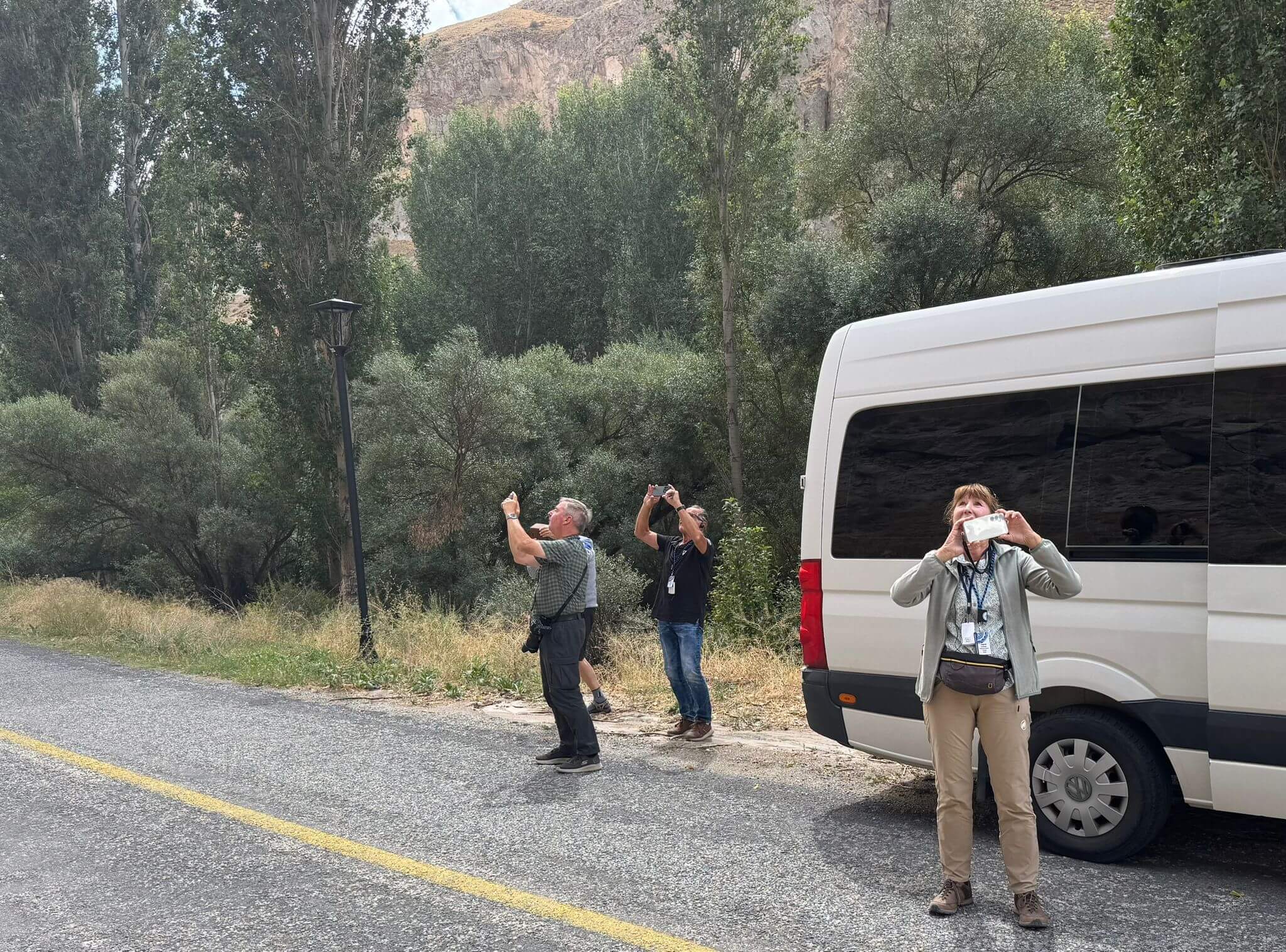 Am Morgen starten wir mit unserem Guide und einem Bus in eine bizarre Welt. Vor rund 80 Millionen Jahren haben zwei Vulkane diese Region mit ihrer Asche zugedeckt. Über die Jahrtausende hinweg verfestigte sie sich zu Tuffstein, an der Oberfläche hart, darunter weich wie Sandstein. Die Erosion sorgte dann für Formationen, die nahezu einzigartig sind in der Welt. Wir spazierten durch das Dorf Cemil und besuchten das Keslik-Kloster. Im Soganil Tal konnten wir auf einem kurzen Bergweg einen kleinen Teil der Hinterlassenschaften der vom 9. bis ins 13. Jahrhundert hier siedelnden byzantinischen Mönche ansehen. Nach unserer Rückkehr im Camp waren sich alle einig, dass das ein weiterer sehr beeindruckender Höhepunkt unserer Reise war. Am späteren Abend bringt uns ein Bus zu einem türkischen Folkloreabend. Bei einem traditionellen türkischen Dinner erleben wir interessante Tanzdarbietungen, in die auch viele Zuschauer einbezogen werden. Nach diesem erlebnisreichen Tag hat kurz vor Mitternacht wohl keiner Probleme, in den Tiefschlaf zu fallen.