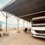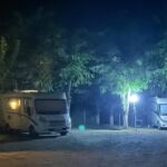Heute haben wir das vorletzte Ziel unserer Tour vor uns. Wir fahren nach Meteora zu den schwebenden Klöstern. Der Weg dorthin führt wieder größtenteils über die A2 vorbei an Thessaloniki. Die häufigen Mautstationen nehmen jeweils nur kleine Beträge. Aber in der Summe kommt doch erstaunlich viel zusammen bei fast 500 km Autobahn. Leider ist die 15 kurz hinter der Venetikos-Schlucht gesperrt, sodass wir über eine Umleitung nach Kastraki fahren und viele keinen Blick in die beeindruckenden Felsformationen werfen können. Nur denen, die dann bedauerlicherweise zurückfahren mussten, war ein Blick vergönnt. In unserem CP haben wir einen für uns reservierten Platz mit Pool. Am Abend besuchen wir das Restaurant und können schon mal testen, ob es für unser Abschiedessen am nächsten Tag geeignet ist. Das Urteil fällt positiv aus. Und wie immer treffen wir uns danach zu einem Absacker vor einem Womo. Schließlich will keiner angefangene Rakiflaschen mit nach Hause nehmen.