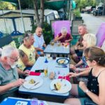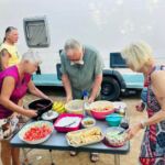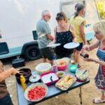 Nach den vielen Kilometern der letzten beiden Tage haben wir uns den heutigen Ruhetag wohlverdient. Die Sonne lacht schon am frühen Morgen durch die Fenster der Womos, sodass die Ägäis förmlich zum Baden ruft. Das schaffen auch einige. Andere gehen den Morgen ruhig an. Der Tag bietet sich nach dem Frühstück für vieles an, was nicht immer mit Ruhe zu tun hat. Am späteren Nachmittag treffen wir uns zur Teilnehmerbesprechung. Wir verlassen morgen Zentralmazedonien und fahren nach Thrakien. Anschließend folgt mit unserer ersten Campertafel ein immer wieder schöner Teil der Reise. Unser Grillmeister zaubert aus den österreichischen Krainer Würsten, den selbst eingelegten Steaks und Hühnerbrüsten schmackhaftes Essen. Die von allen Teilnehmern zubereiteten Salate von der Campertafel setzen dem Ganzen die Krone auf. Alle lassen sich dieses Menü schmecken. Dann probieren wir noch die gespendeten Getränke und sind mehr als satt. Nach den leiblichen Genüssen kommt die Unterhaltung. Mit vielen Beiträgen werden jetzt auch die Lachmuskeln trainiert. Der Abend auf Sithonia wird bei allen in guter Erinnerung bleiben und verlangt nach Wiederholung.