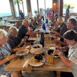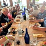 Alle Teilnehmer waren schon vor Ort im Camp. Die Anreise war für alle Teilnehmer angenehm. Der Campingplatz liegt wunderschön in einer Badebucht. So bekamen alle schon einen Vorgeschmack auf den schönsten Teil der Reise, mit einem türkisblauen Meer. Bei einem kleinen Umtrunk fand die Begrüßung statt und Christine hat dazu noch einige kleine Häppchen bereitet. Die Gruppe hat schnell zueinander gefunden. So freuen wir uns alle auf die folgende Reise. Am Abend lud KUGA noch zu einem Fischmenü in dem angrenzenden Restaurant ein. Es mundete köstlich und die begleitenden Weine waren vorzüglich.
