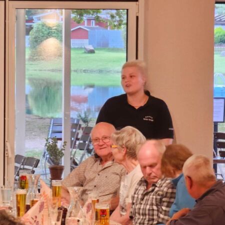 Anschließend ging es zum kulinarischen Teil über. Zur Vorspeise gab es eine badische Kartoffelsuppe, als Hauptgang stand ein badisches Schnitzel mit Rahmsoße und Spätzle auf der Speisekarte. Zum Dessert wurde frischer Obstsalat serviert.