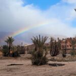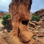 Von hier geht es nun in den Anti-Atlas. Der Verkehr wird weniger, die Landschaft karger. Wir fahren auf verhältnismäßig gut ausgebauten Straßen durch kleine, lehmfarbene Ortschaften, vorbei an Palmenhainen, über einen 1.220 m hohen Pass und erreichen dann unseren neuen Campingplatz in Tafraoute. Auch hier hat es geregnet. Die Einwohner freut es und ab morgen soll es auch wieder trocken bleiben und wärmer werden, pünktlich zu unserer Campertafel.