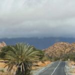 Auch in dieser Nacht hat es wieder geregnet, ausgiebig und langanhaltend. Unser Fahrtag führt uns heute nach Tafraoute. Wir haben eine abwechslungsreiche Strecke vor uns, ca. 200 km auf denen wir einen großen Wechsel der Landschaft erleben. Zum Start ins richtige Marokko, wie unser Guide Zaid es nennt, werden noch anstehende Einkäufe erledigt, auch für die Campertafel, die übermorgen ansteht. Unsere Route führt uns zuerst nach Tiznit, der Silberstadt. Auf dem Weg dorthin sehen wir auch, dass es nicht nur in Agadir geregnet hat.