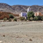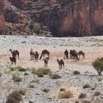 Endlich haben wir das Wetter, das wir alle erwartet und mit dem Land Marokko verbunden haben: blauer, wolkenfreier Himmel und Sonne, die Hitze spendet. Für unseren heutigen Fahrtag durch den Anti-Atlas ideale Voraussetzungen. Wir fahren durch eine karge Landschaft, nur vereinzelt stehen Sträucher, selten Palmen. Die Mandelbäume fangen gerade an zu blühen, später als sonst, da es hier zu wenig Wasser gab. Wir sehen trockene Flussläufe und kleine Ortschaften, die fast ausgestorben wirken, auch weil wir nicht nur Ramadan haben, sondern auch Sonntag. Auf den trockenen Flächen sind aber Ziegen- und Schafherden unterwegs, auch eine Dromedarherde gerät in unser Blickfeld. Hier und da mitten im Nichts vereinzelt ein paar Häuser und man fragt sich, wovon leben die Menschen hier.