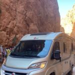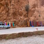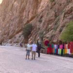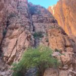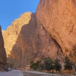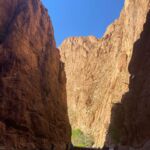 Wir starten unseren heutigen Tag bei schönstem Wetter in Richtung Todra-Schlucht, die von unserem Campingplatz gerade einmal 8 km entfernt ist. Wir sehen auf dem Weg kleine Lehmdörfer, die sich an die Felskanten schmiegen, und viele grüne, meist Obstgärten. An der schmalsten Stelle ist die eigentliche Schlucht gerade einmal 10 m breit und die Felsen ragen bis zu 300 m hinauf.