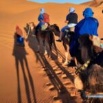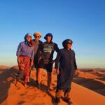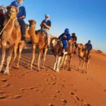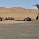 Jetzt geht es weiter zum Endziel des heutigen Tages: die Sahara. Wir erreichen unser Camp am Rand der Wüste und parken unsere Wohnmobile für die nächsten 3 Nächte. Am Rande des Camps sehen wir schon die Dromedare liegen, mit denen die, die wollen, heute auf einen Dünenkamm gebracht werden, um von dort den Sonnenuntergang zu erleben. Ein Erlebnis, das man nie vergessen wird.