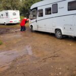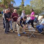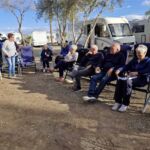 Angekommen auf dem neuen Campingplatz, müssen schon die ersten Entscheidungen getroffen werden. Ein Künstler wartet auf die Fahrzeuge, die mit Wüstenmotiven verschönert werden sollen. Eine kurze Absprache der Motive und schon legt er los. Die Ergebnisse können sich wirklich sehen lassen. Aber die Hauptsache steht noch an: Das Geburtstagsständchen für Dorothea. Auch auf diesem Wege nochmals: Herzlichen Glückwunsch, Dodo.