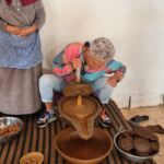Der Sonntag beginnt mit strahlendem Sonnenschein. Zwar ist es noch kalt, aber der Regen hat während der Nacht aufgehört. Durch den aufgeweichten Boden gestaltet sich der Tagesstart etwas holprig. Mit vereinten Kräften schaffen wir es aber, dass der Besuch in der Argan-Kooperative in der vorgesehenen Zeit stattfinden kann. Wir erfahren, wie und von wem Arganöl gewonnen wird und für welche Anwendungsgebiete es besonders geeignet ist. Natürlich wird im angeschlossenen Verkaufsraum nach Ende der Ausführungen noch ordentlich eingekauft.