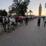 Um 18:00 Uhr fahren wir dann mit unserem Bus zum Gauklermarkt. Bedingt durch das heute Abend noch kalte Wetter und Ramadan ist es dort nicht zu voll und wir haben keine Probleme damit diesen Platz in Ruhe zu erkunden und von oben zu betrachten. Und wieder geht ein interessanter und ereignisreicher Tag zu Ende.