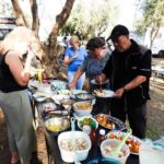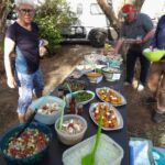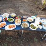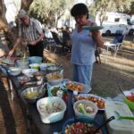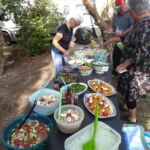 Fleißige Hände stellen die lange Tafel zusammen, andere fleißige Hände haben ein reichhaltiges und schmackhaftes Salatbuffet zusammengestellt.