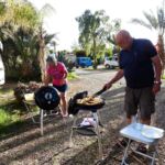 Am Abend feiern wir den Geburtstag der Reiseleiterin in Form einer Campertafel. Die Reiseleitung sorgt für die nötige Fleischeinlage und für Getränke ist reichlich gesorgt. Für einige, die noch keine geführte Reise unternommen haben, ein Novum.