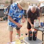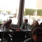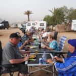 Bevor wir ins Camp zurückkehren, gönnen wir uns wieder einen Berber Whiskey zwischen Einheimischen, die Mekka besucht haben, erkennbar an den weißen Kopfbedeckungen.
