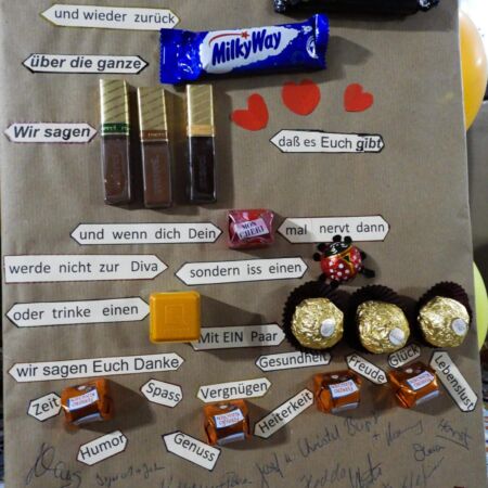Eine besondere Bestätigung zu der tollen Reise drücken die Teilnehmer in einer sehr schön zusammengestellten Süßigkeitenserie aus. Mit einer solchen Truppe kann eine Reise nur positiv verlaufen.