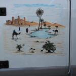 Zurück im Camp hat Nabil, ein Künstler, der tolle Wüsten-Bilder auf unsere Fahrzeuge zaubert, sehr schöne Ergebnisse geliefert.