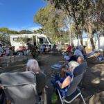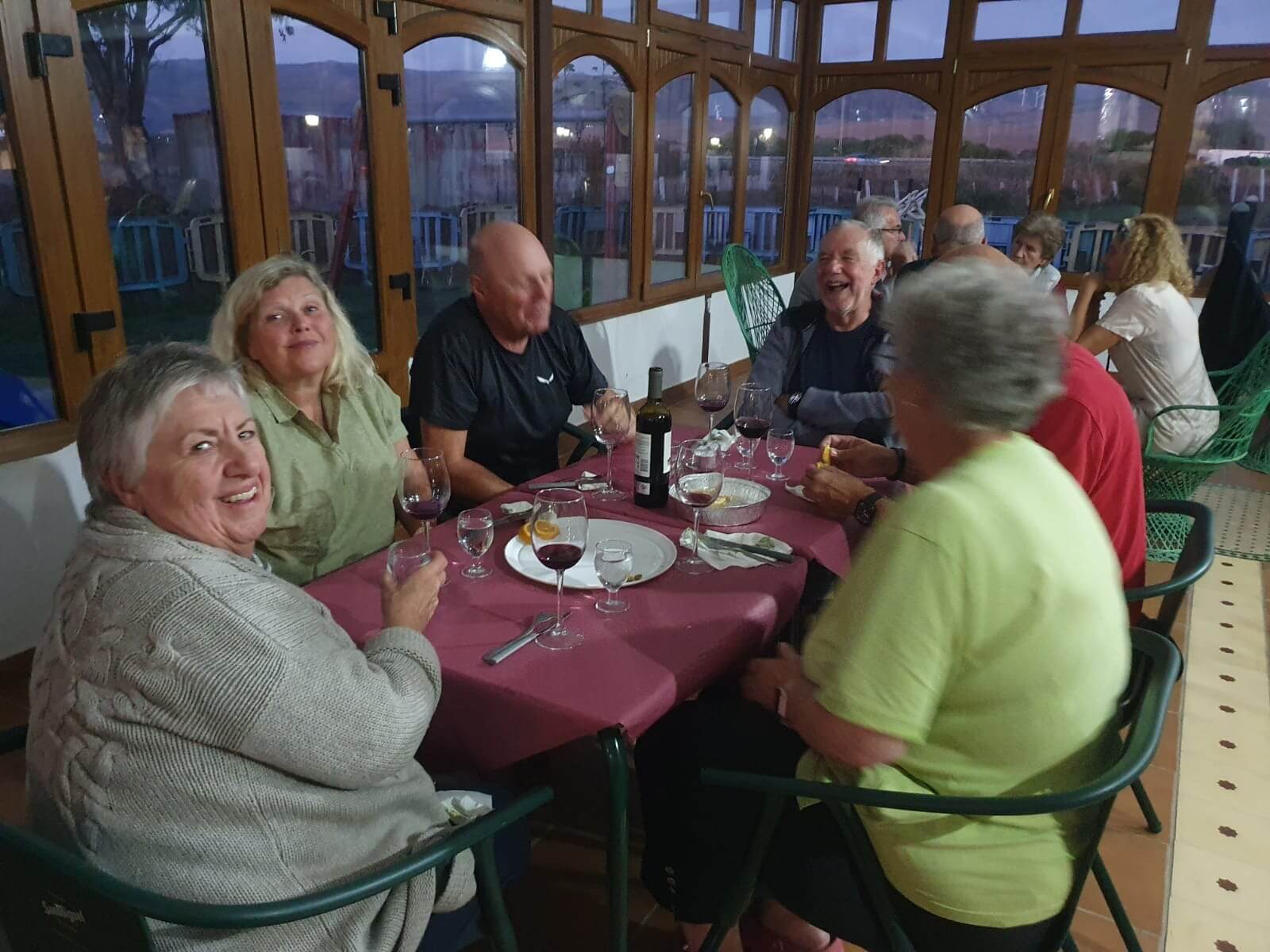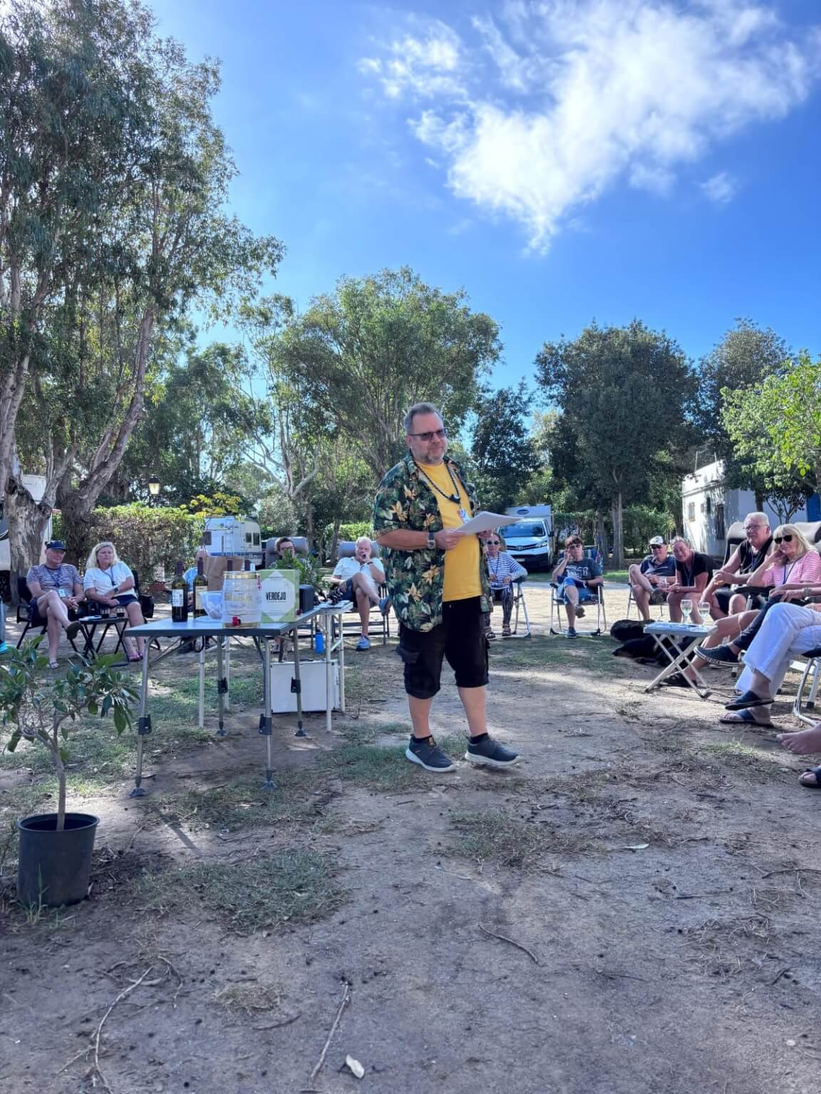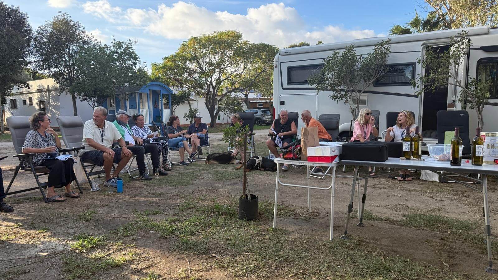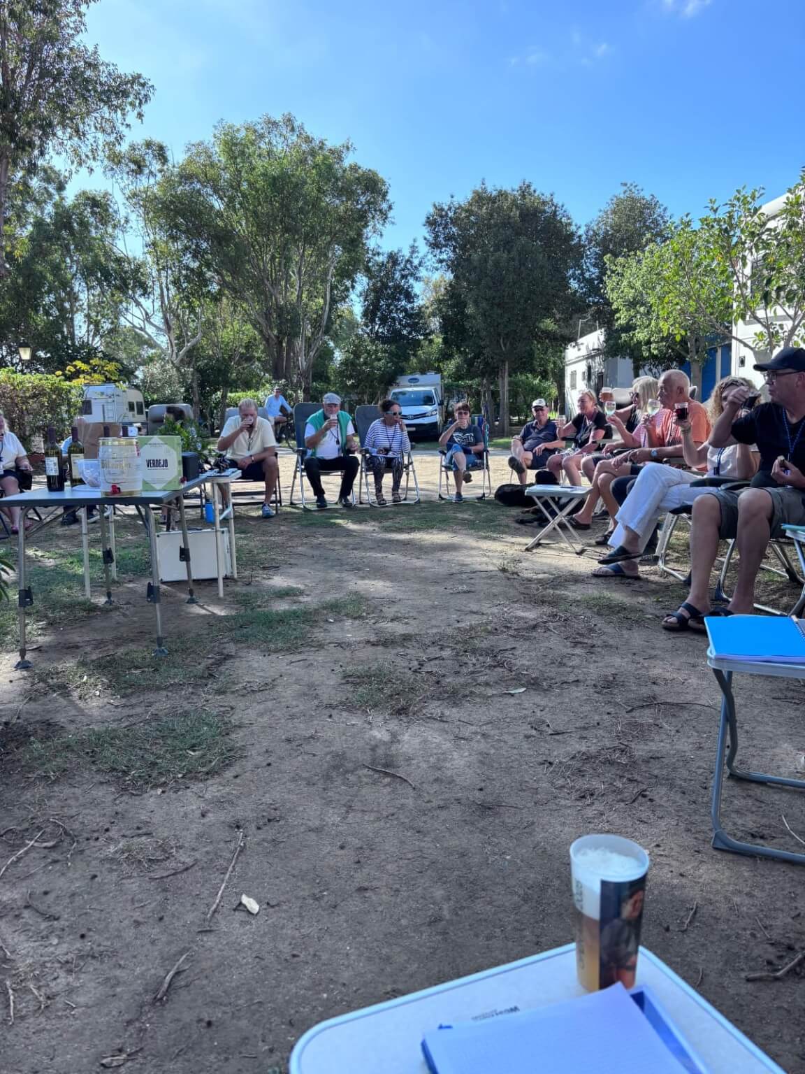 Alle Teilnehmer unserer Marokko-Tour sind pünktlich und wohlbehalten auf dem Campingplatz Rio-Jara eingetroffen, sodass wir um 15.00 Uhr mit unserem ersten Treffen anfangen können. Bei schönem Wetter mit Sonnenschein und angenehmen Temperaturen treffen wir uns unter freiem Himmel. Nach der Begrüßung und dem ersten „Prost“ auf die gemeinsame Reise gibt es die Informationen zur Reise allgemein und zu Marokko, Fährtickets, Audio-Guides und Navis werden verteilt und erklärt und am Schluss findet noch eine kurze Vorstellungsrunde statt.